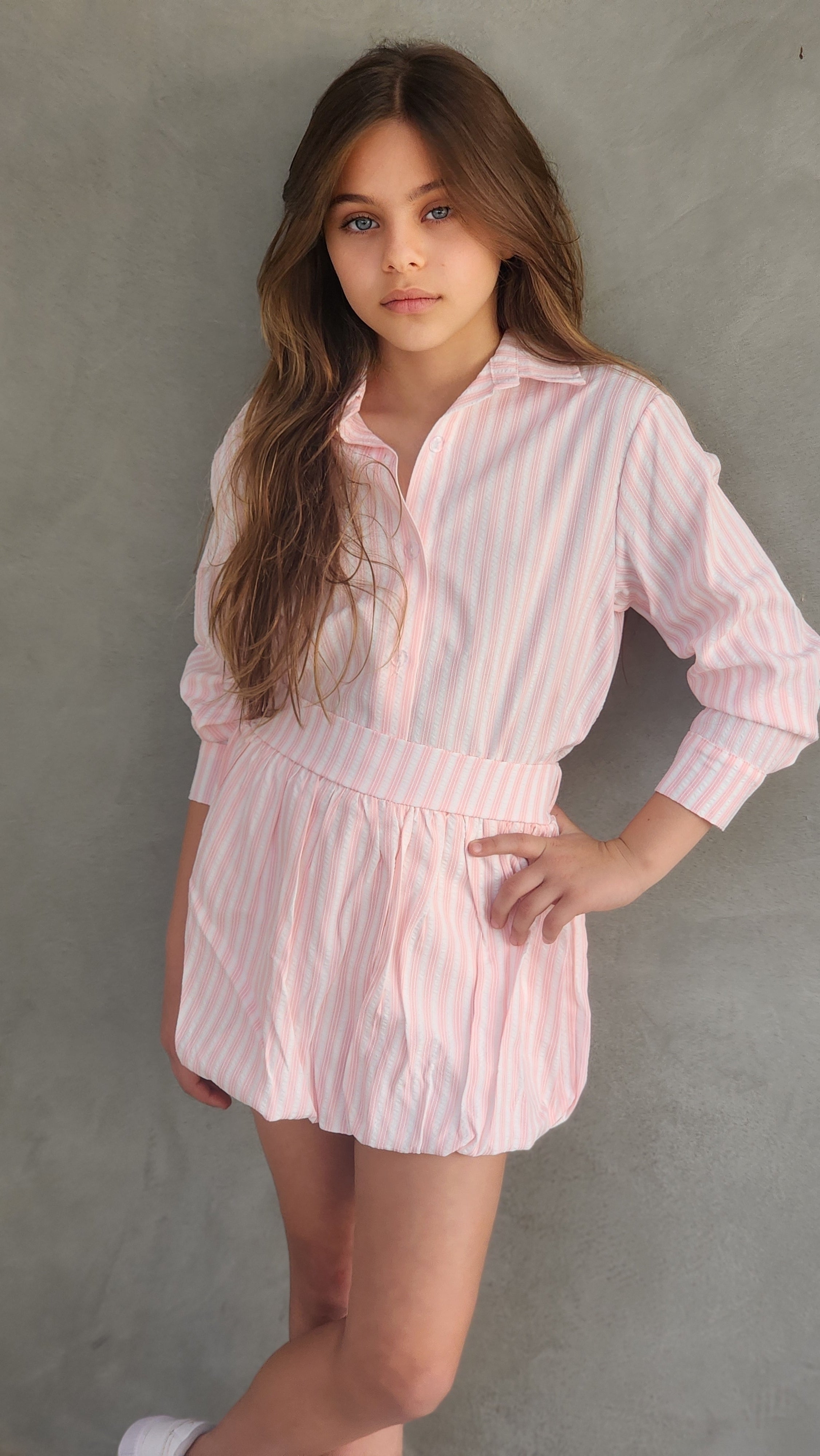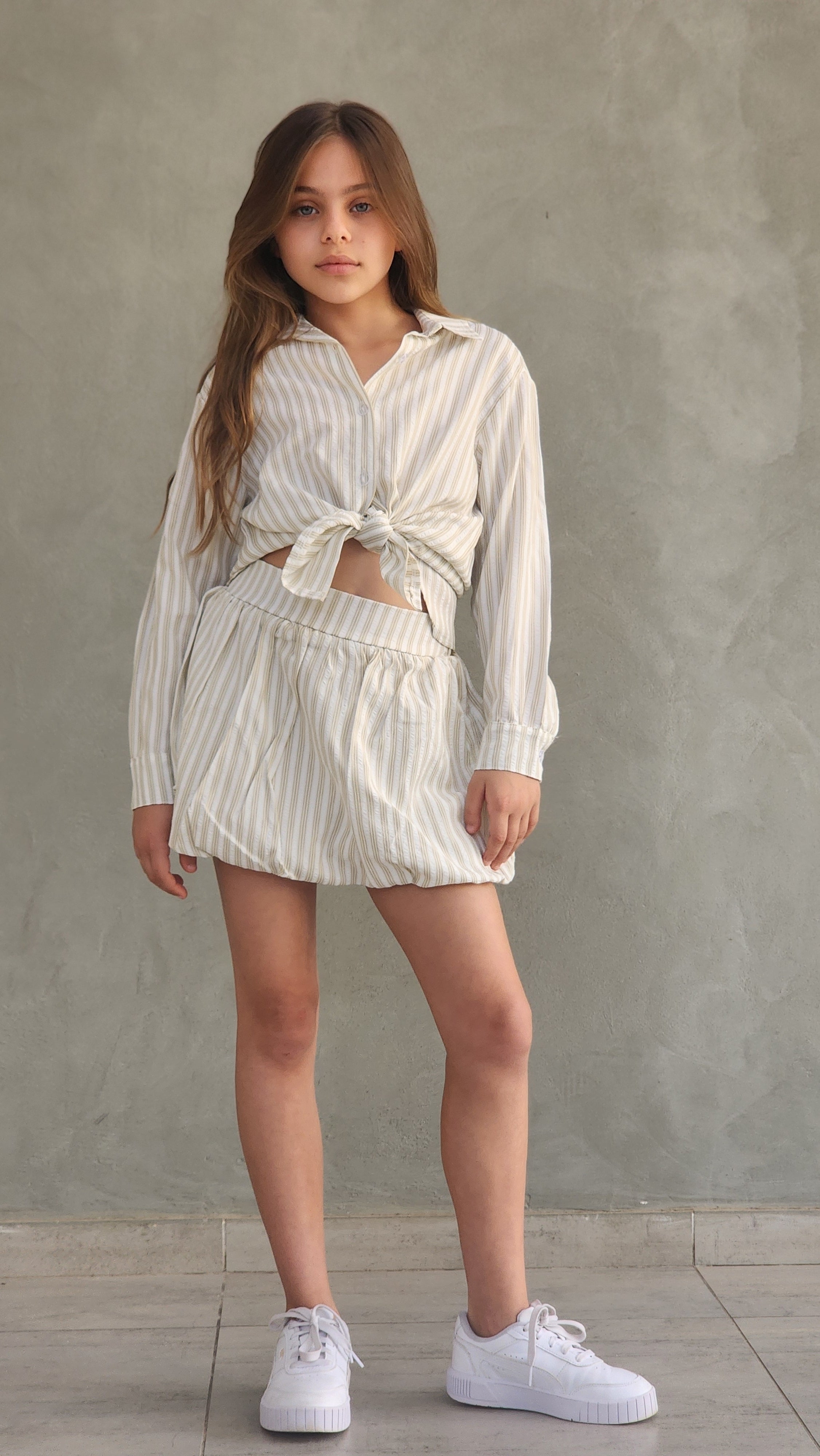 סט חצאית בלון וחולצה רחבה מסריג שערות