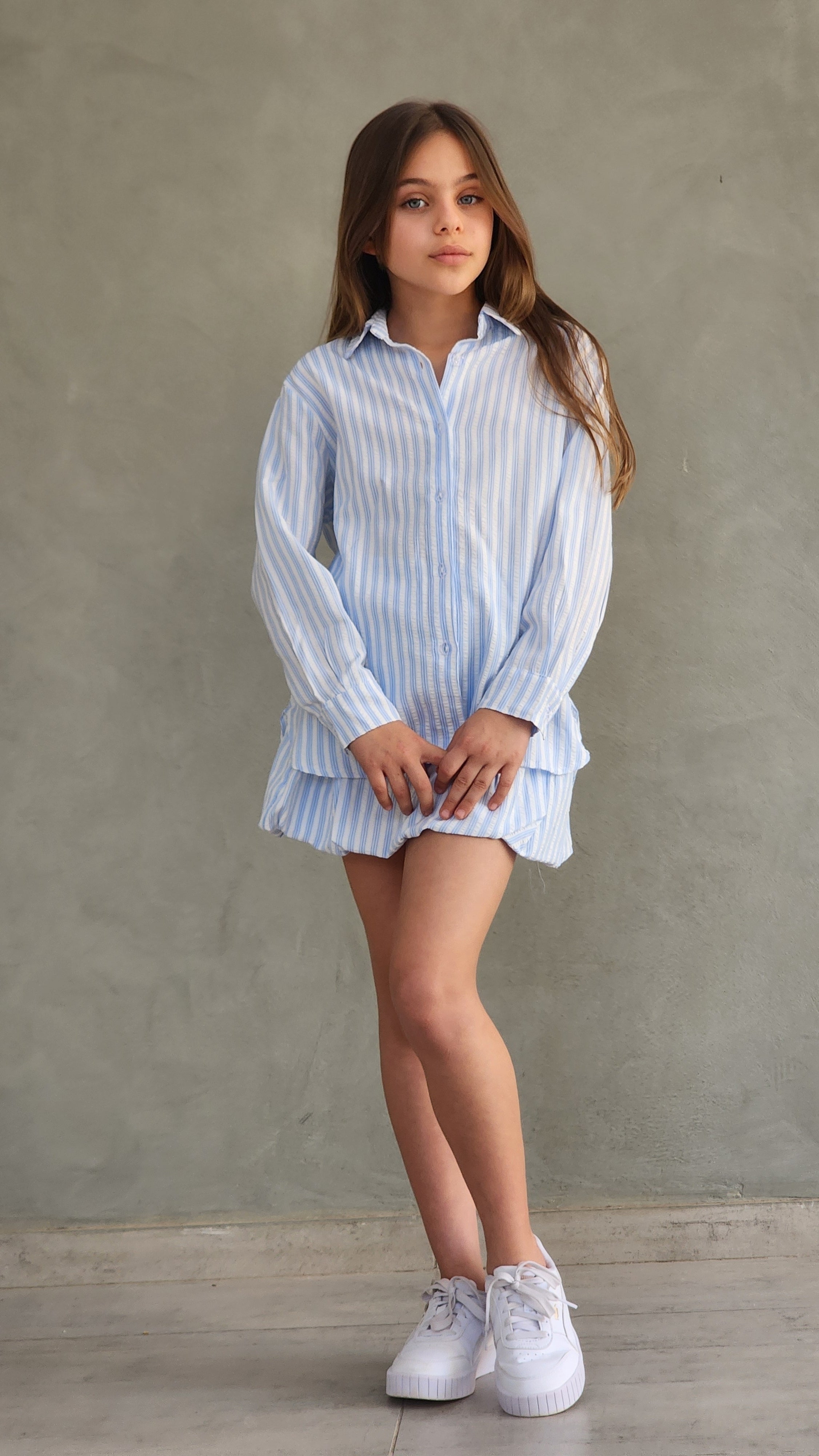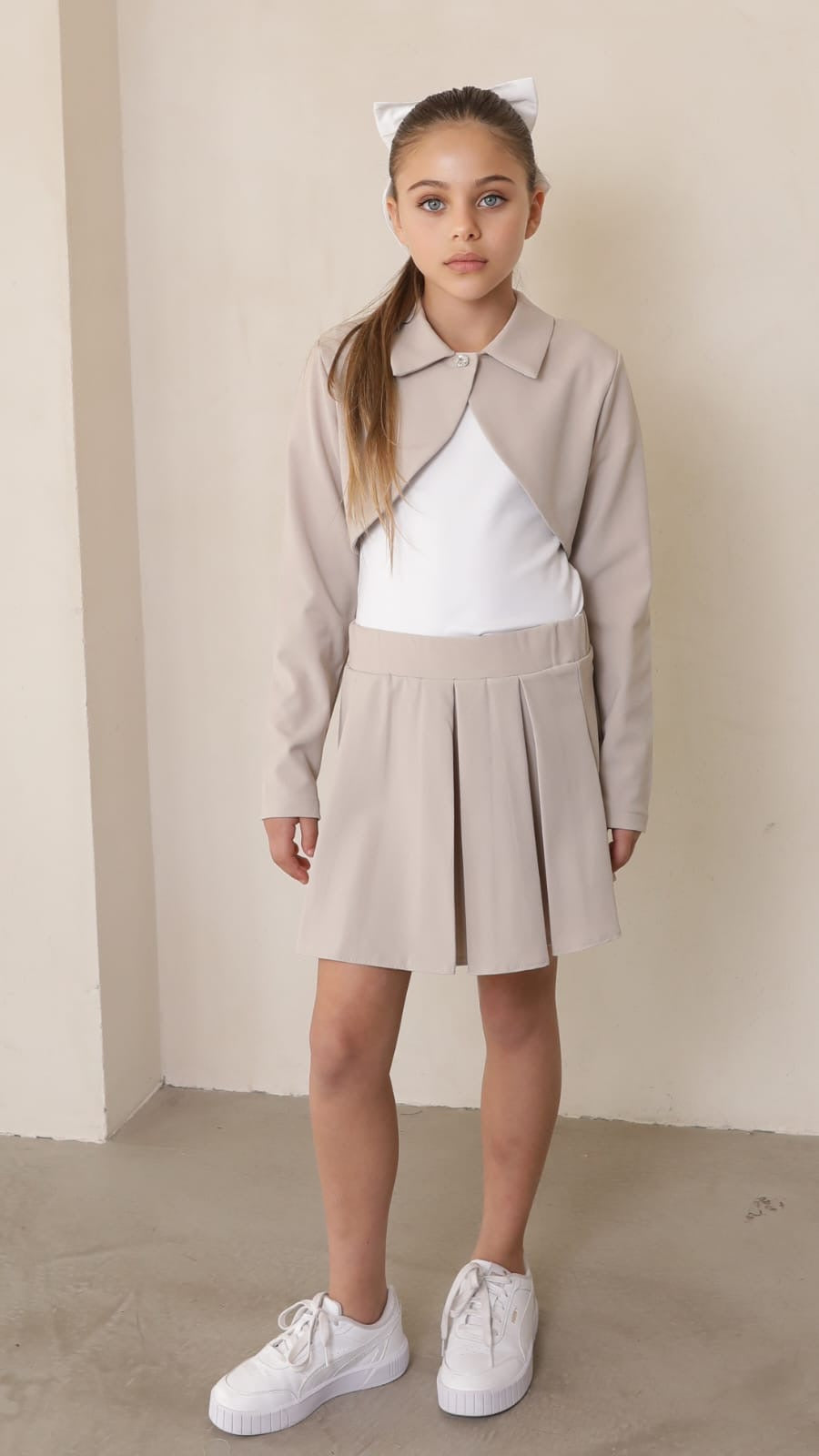סט 3 חלקים חצאית כפלים ג'קט משולב וחולצה