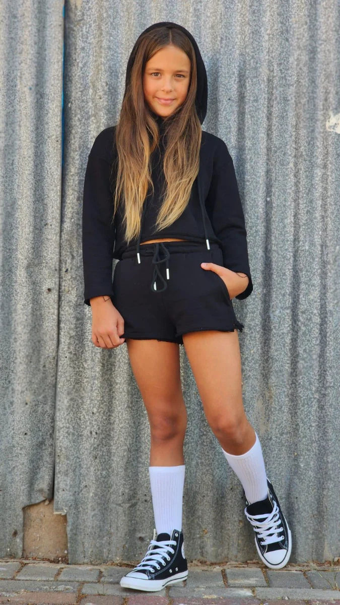 סט פרנצ׳טרי כתנה, שורט שליץ וסווצ׳ר קפושון עם שרוכים.