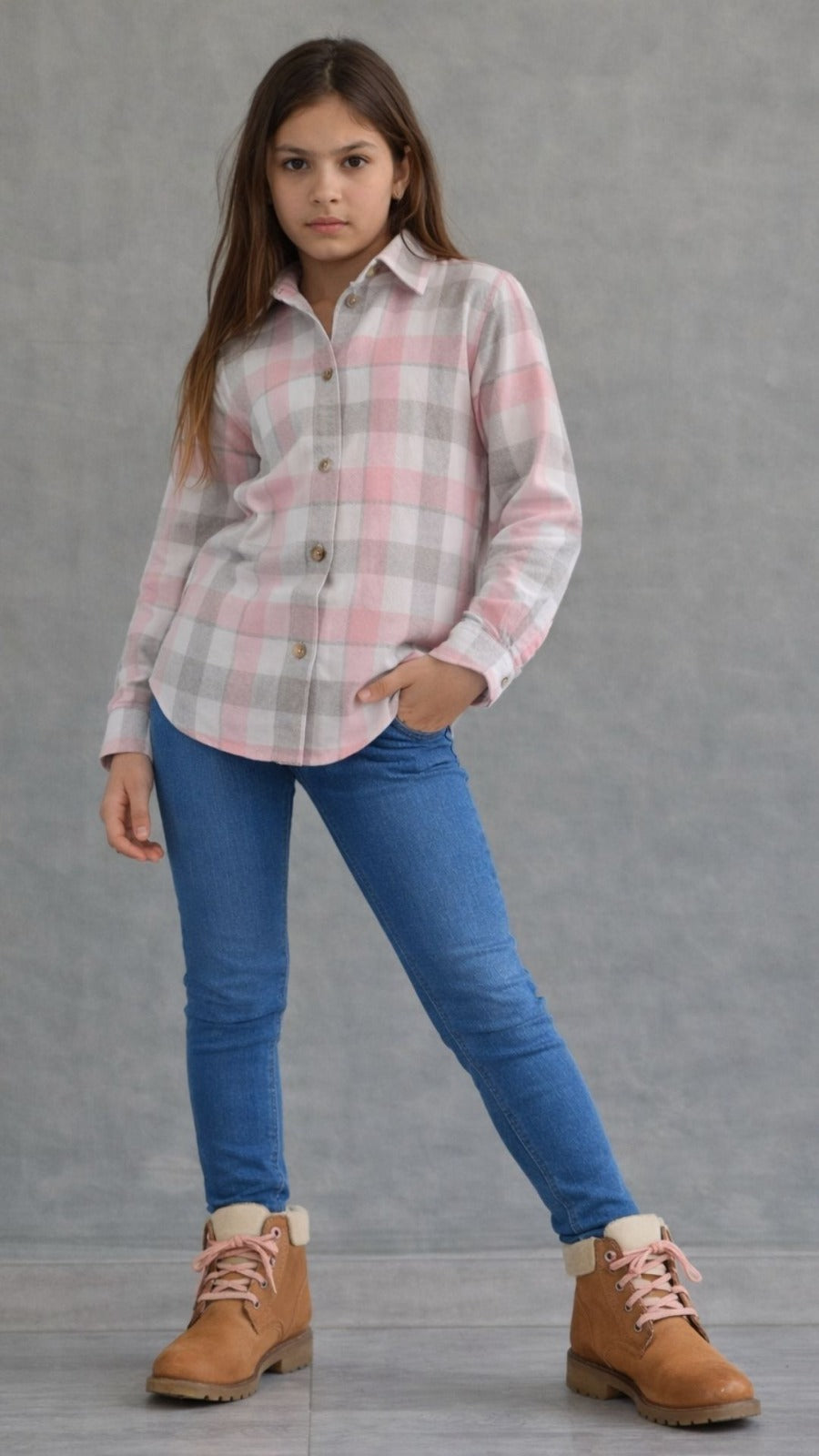 חולצה מכופתרת בד פלנל לבנות - נוחות וסטייל בכל יום