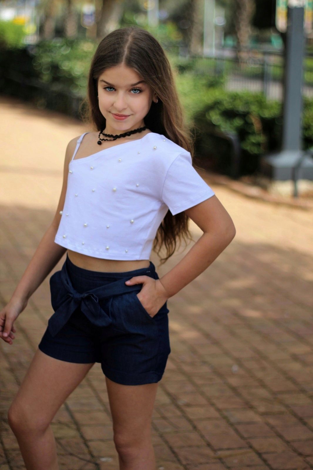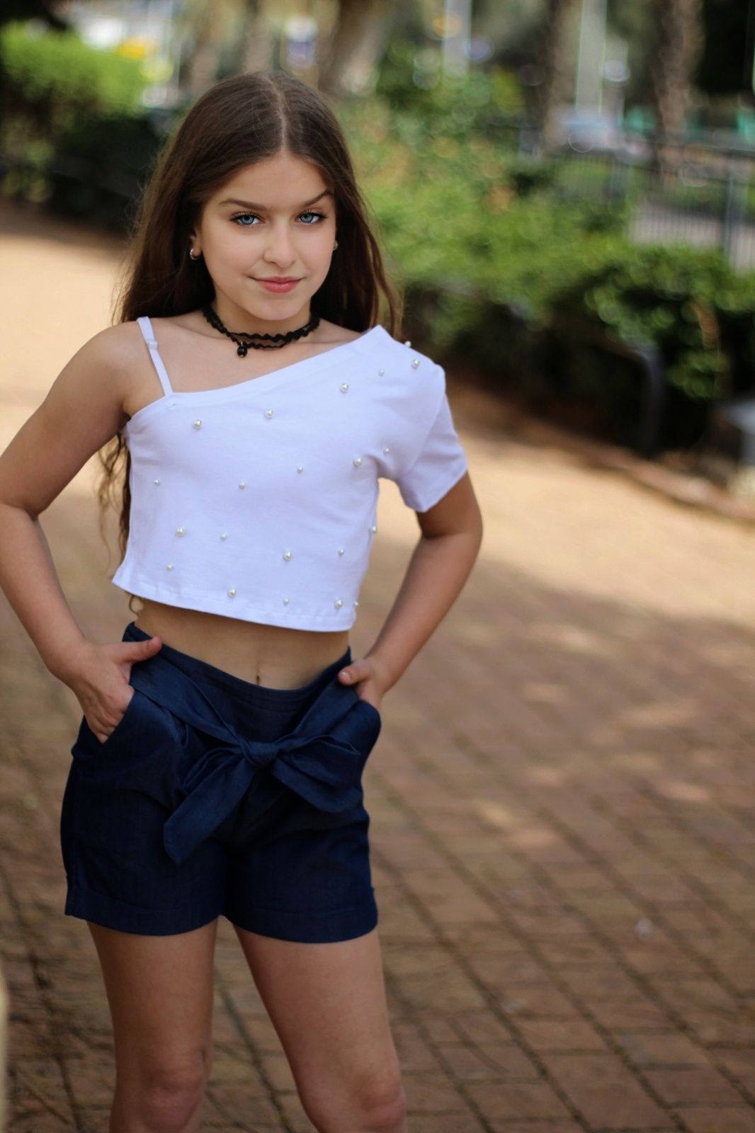 חולצת חצי כתף בטן שזור פנינים