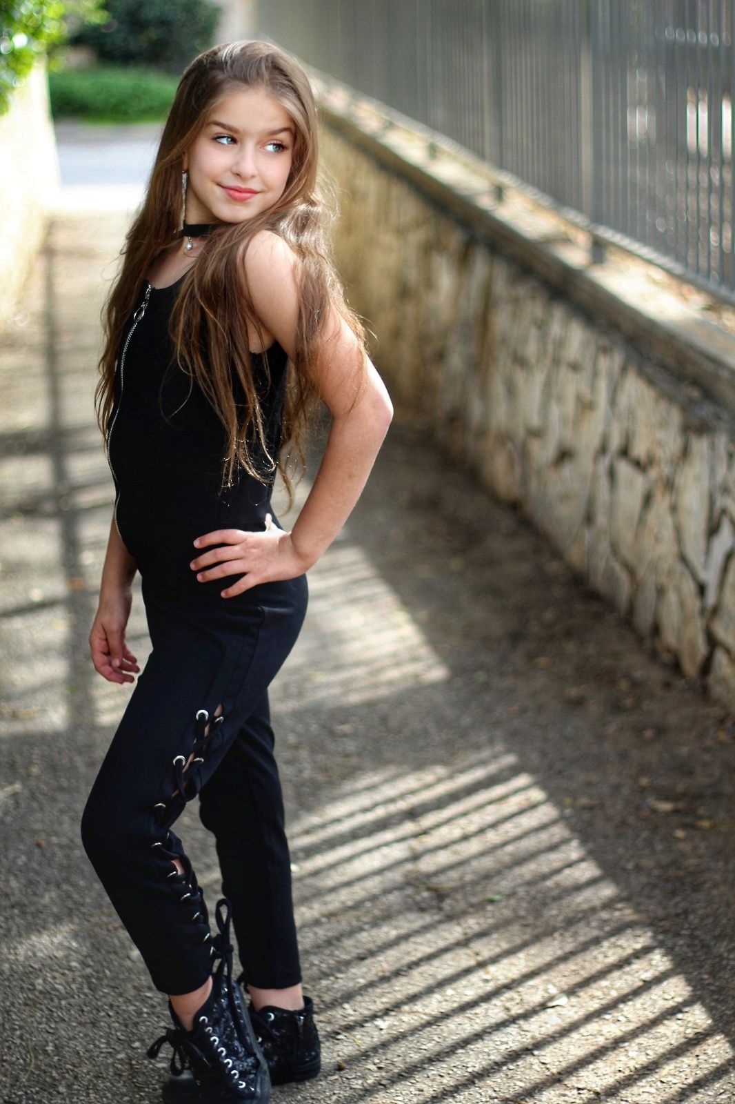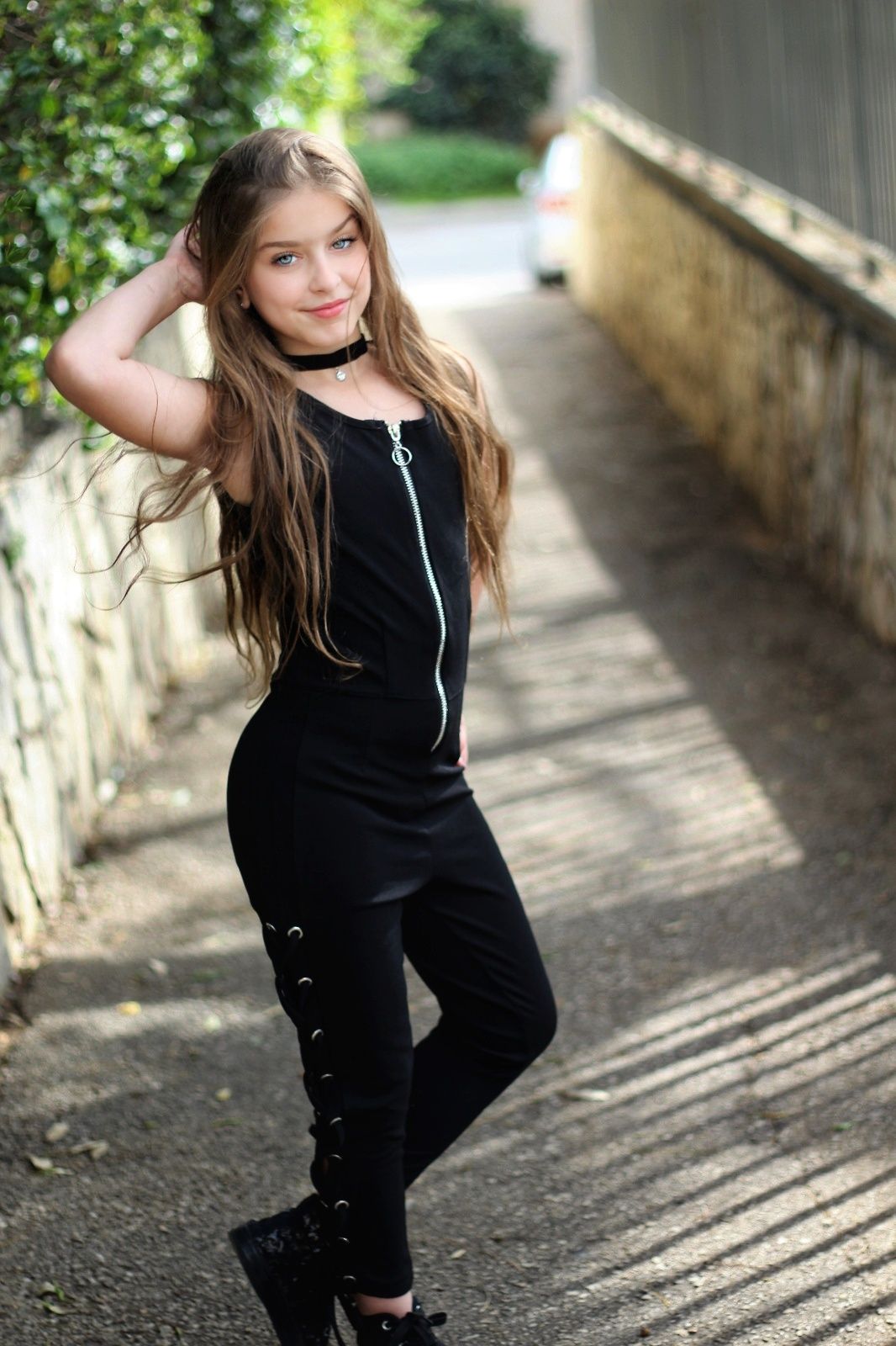 אוברוול מבד רך שילוב עיניות וקשירה בצידי הרגלים רוכסן מתכת מקדימה אוברוול בוי פרנד הדוגמנית לובשת מידה 10