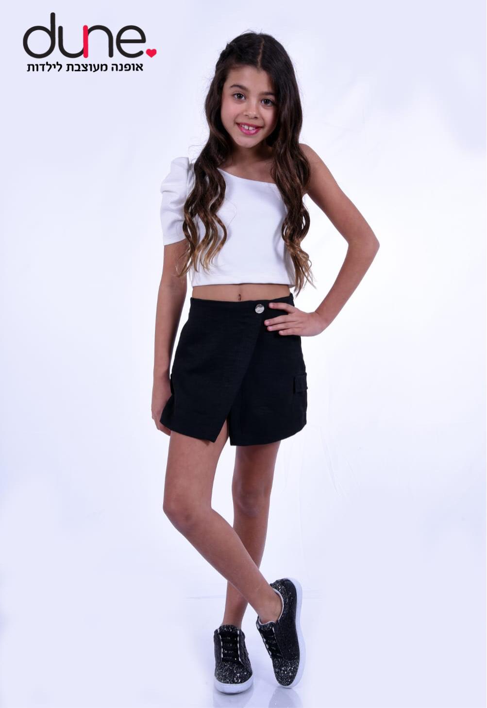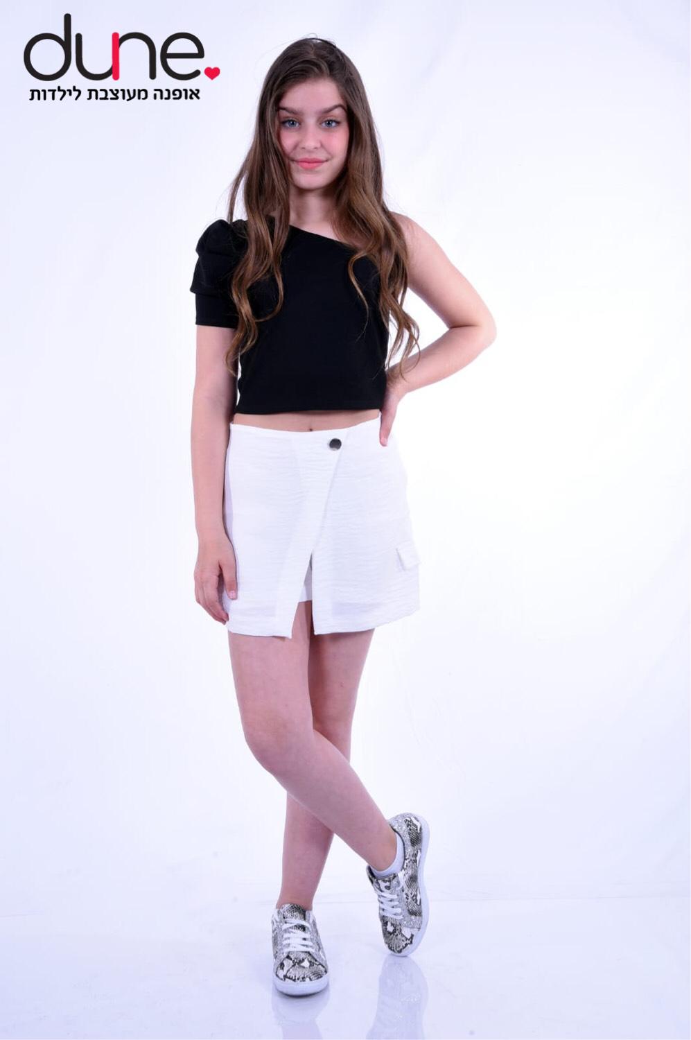 חצאית מכנס מבד פישתן קיים בלבן ושחור