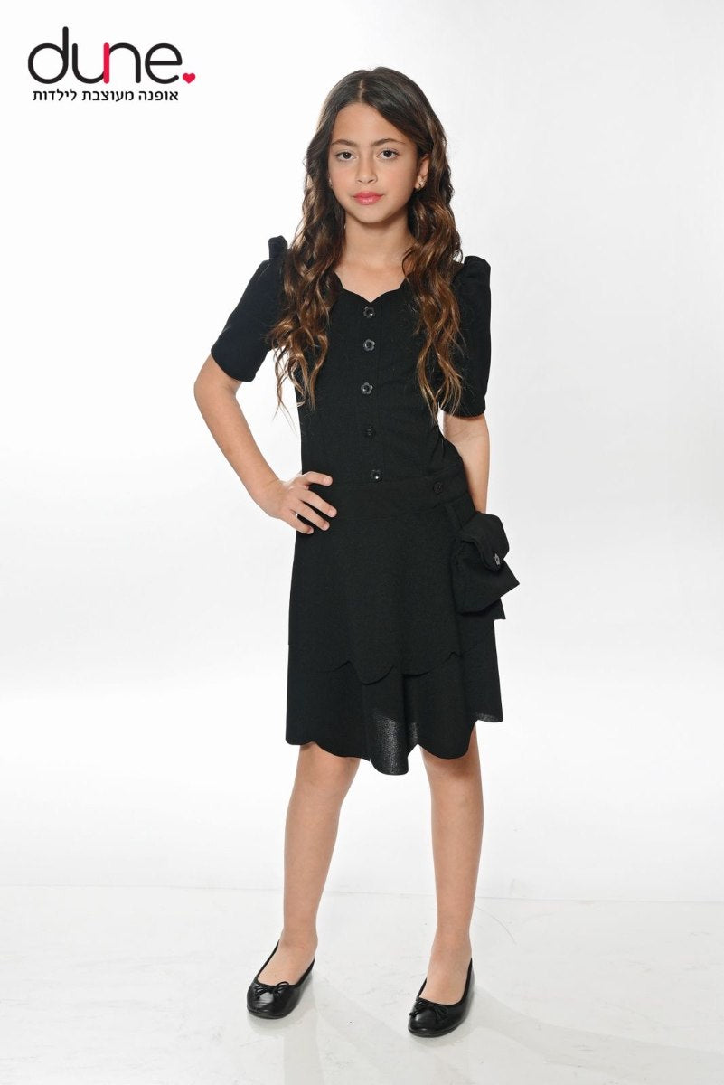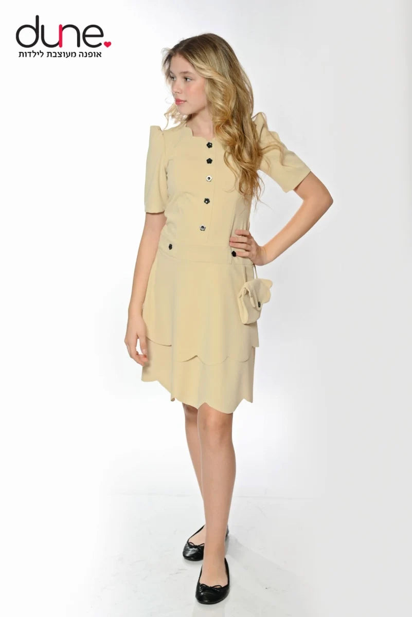 שמלת סקובה כפתור בצורת פרח בשילוב תיק קטן תפור
