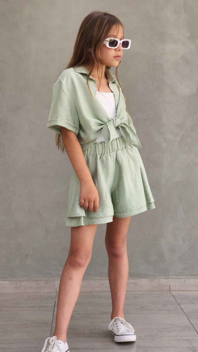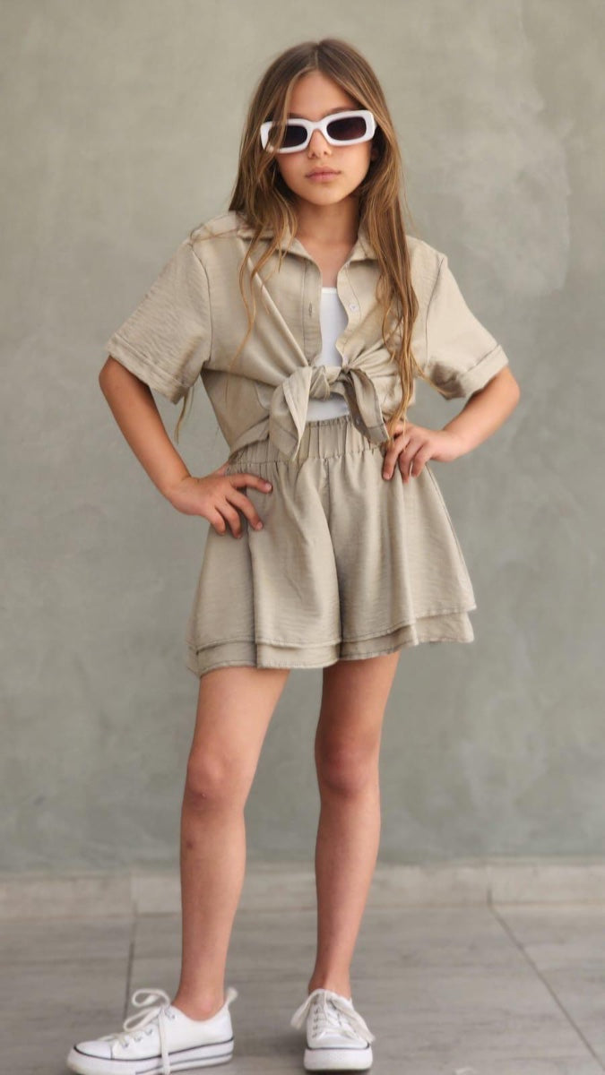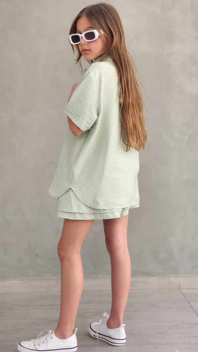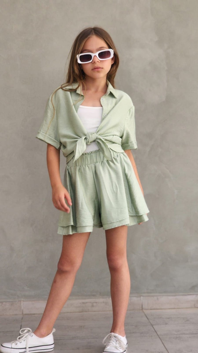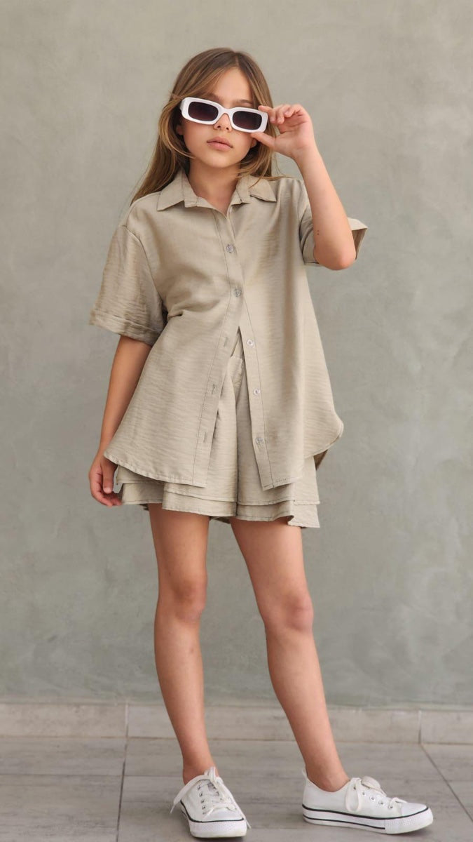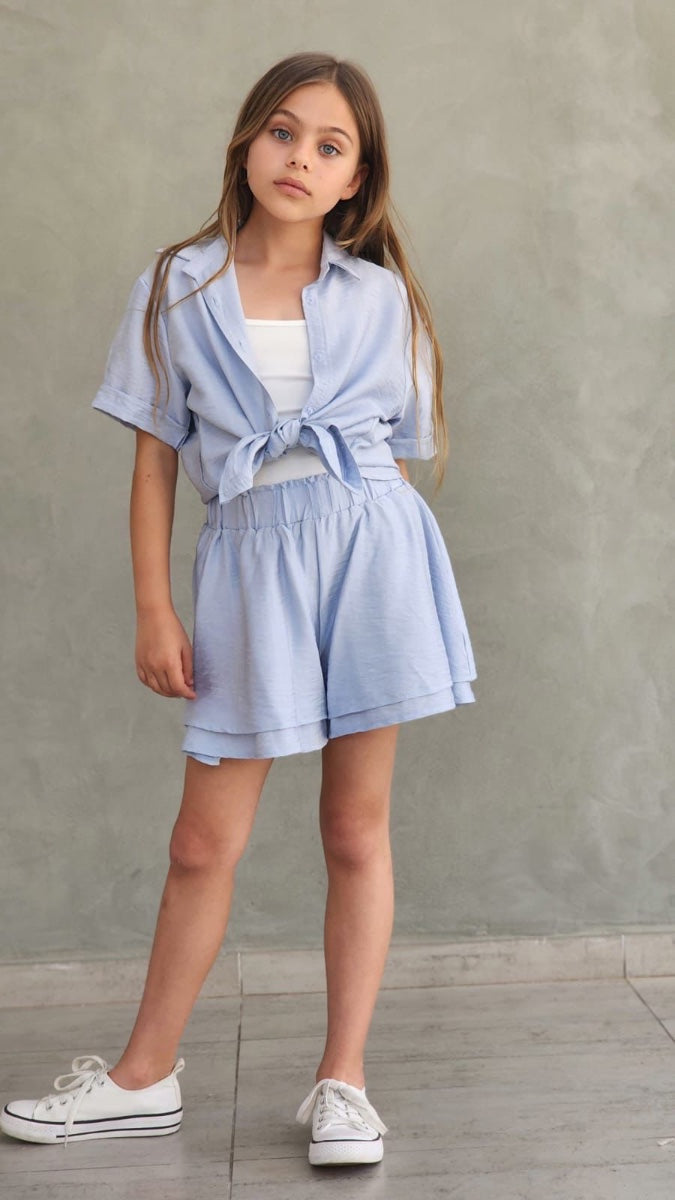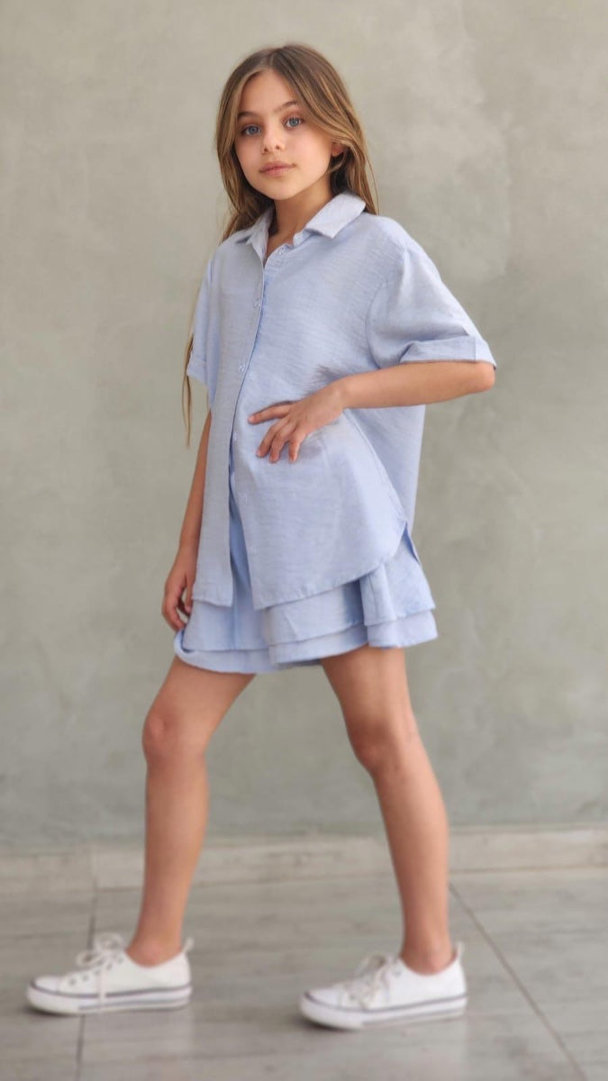 סט 3 חלקים,שורט חצאית, גופיית ג'רסי וחולצה מכופתרת