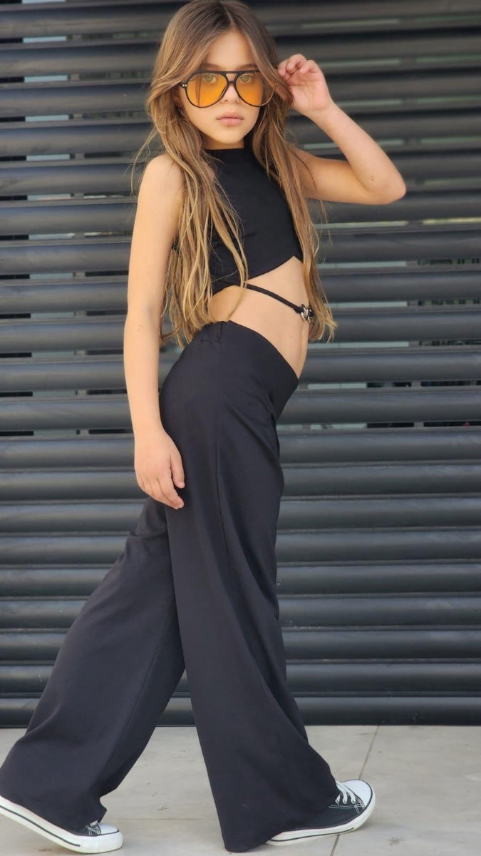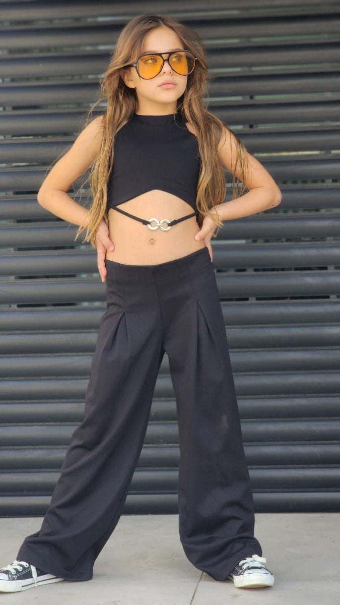 סט טופ טבעת ומכנס פנס רחב ג'רסי