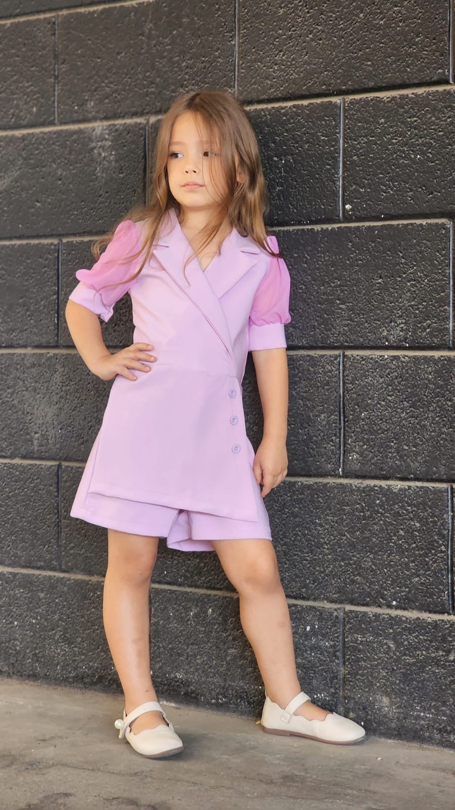 אוברול שורט שילוב שרוול שיפון אלגנטי