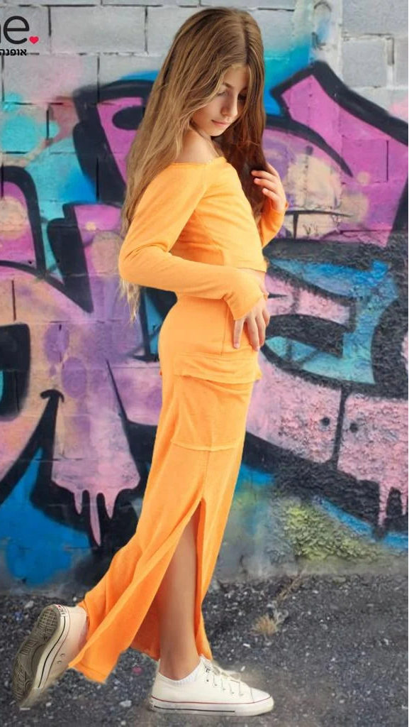 סט תלת חלקי לילדות - חצאית מקסי, חולצה אוף שולדרס וווסט