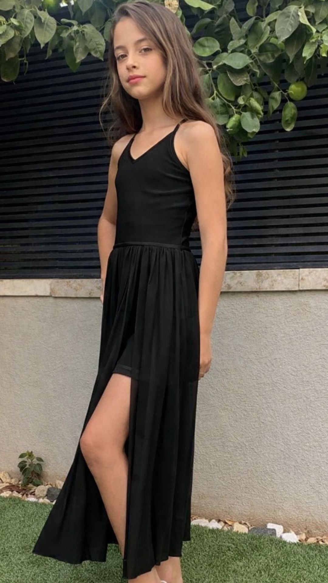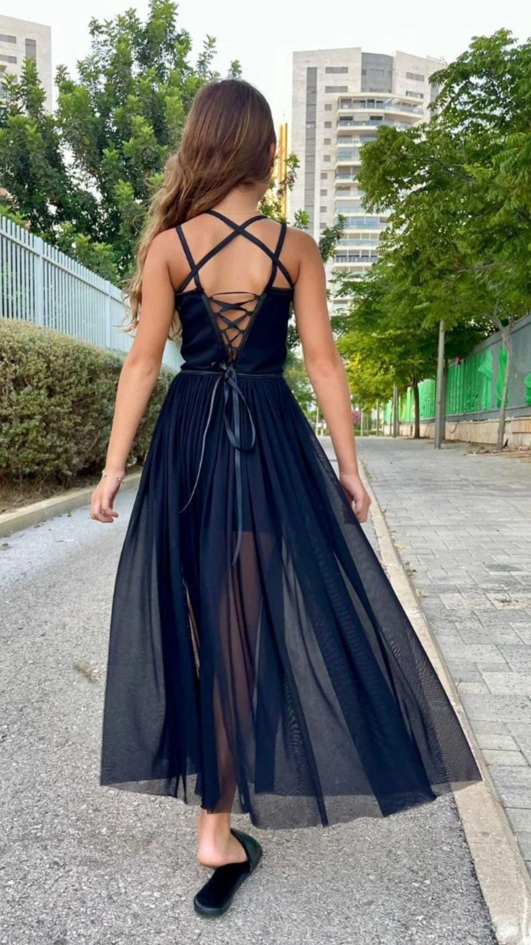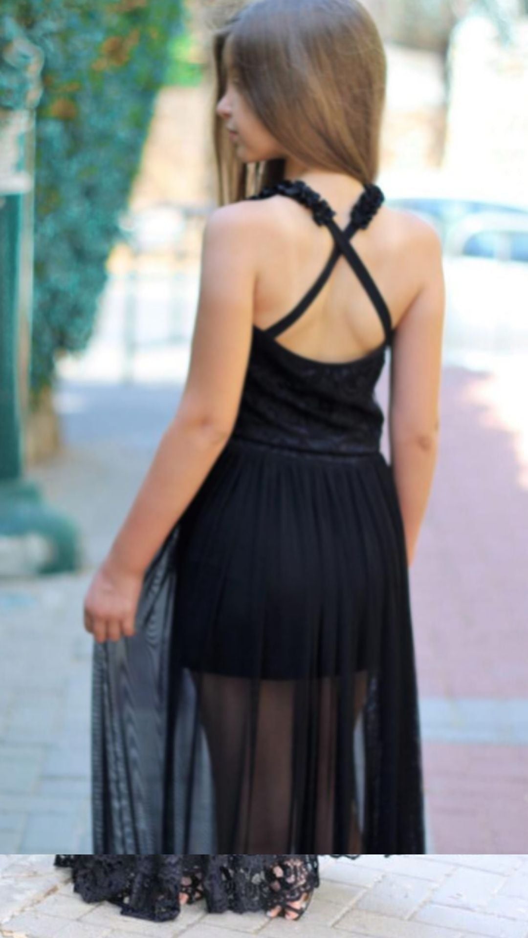 שמלת בת מצווש טוטו שילוב תחרה ושרשרת פנינים