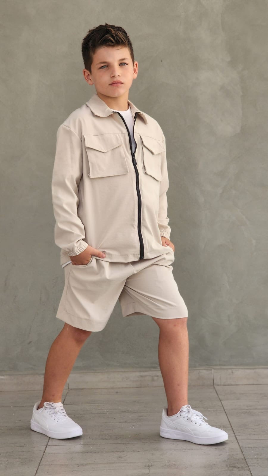 חליפת בנים ברמודה ג'קט רוכסן וחולצת ניקי