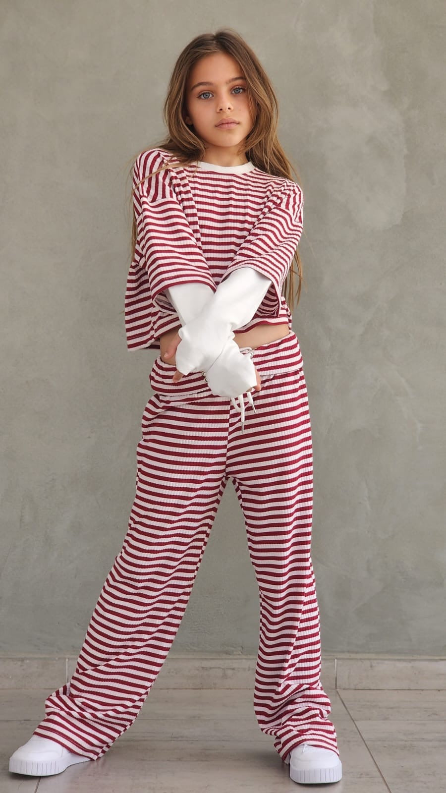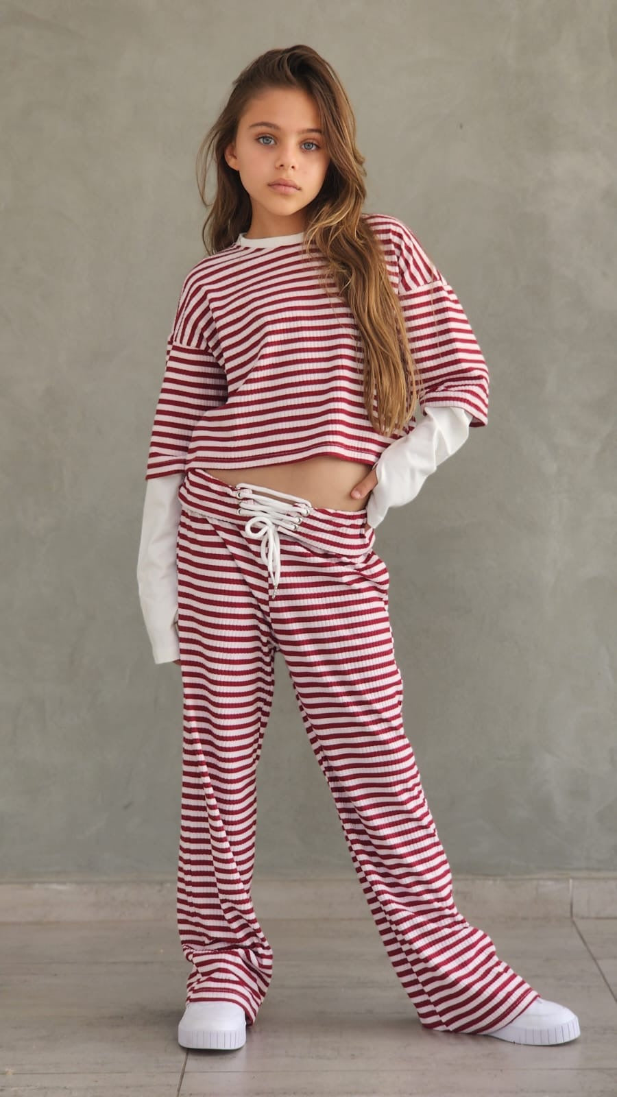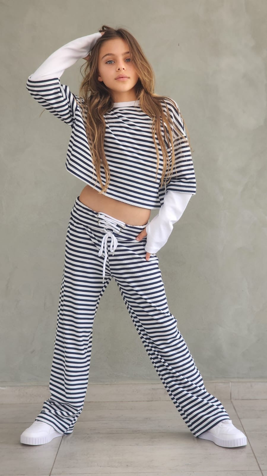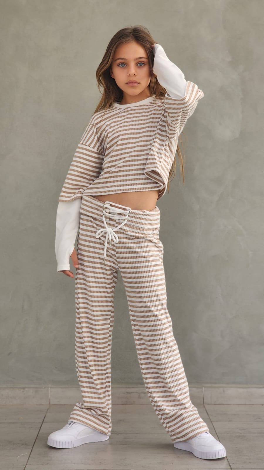חליפת סריג פסים מכנס וחולצת שרוול כפפה