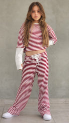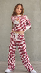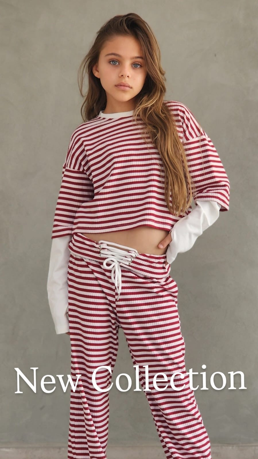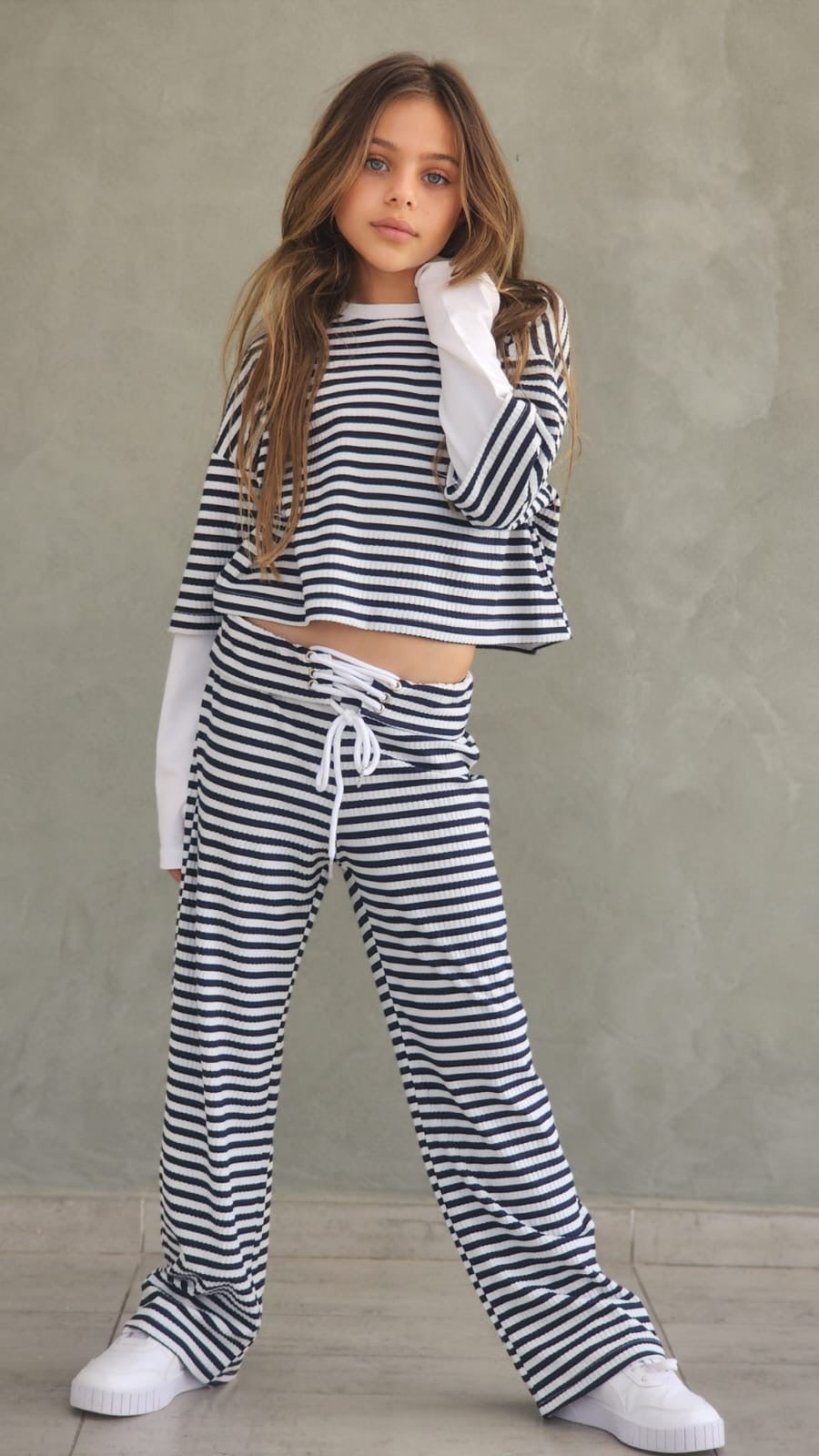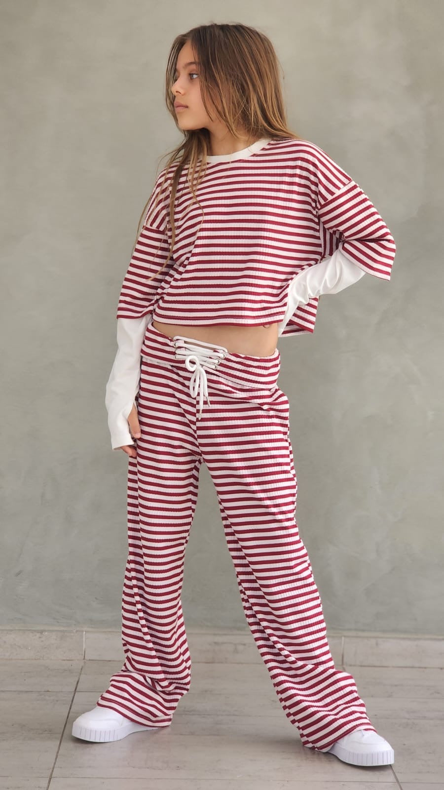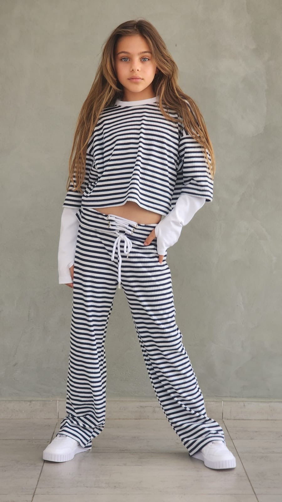 חליפת סריג פסים מכנס וחולצת שרוול כפפה