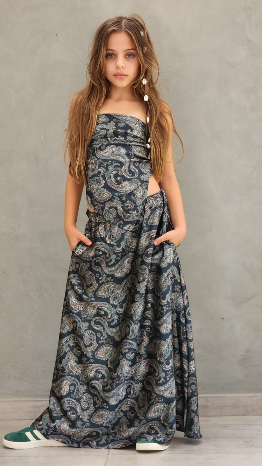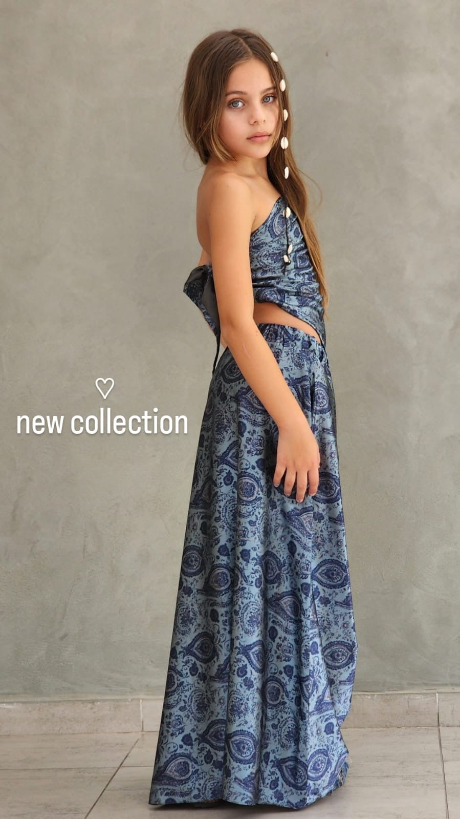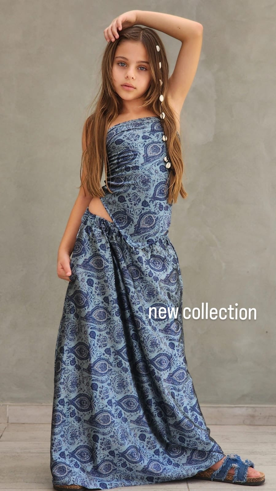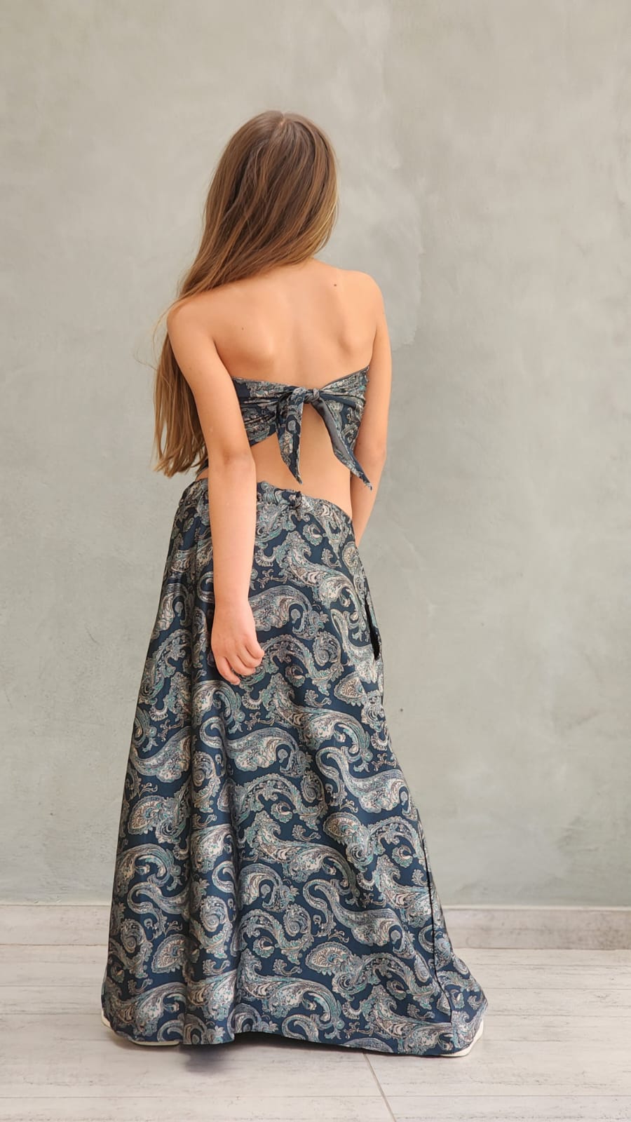 סט חצאית מקסי עם בנדנה הניתנת לקשירת מחוך ללא חולצה לבנה