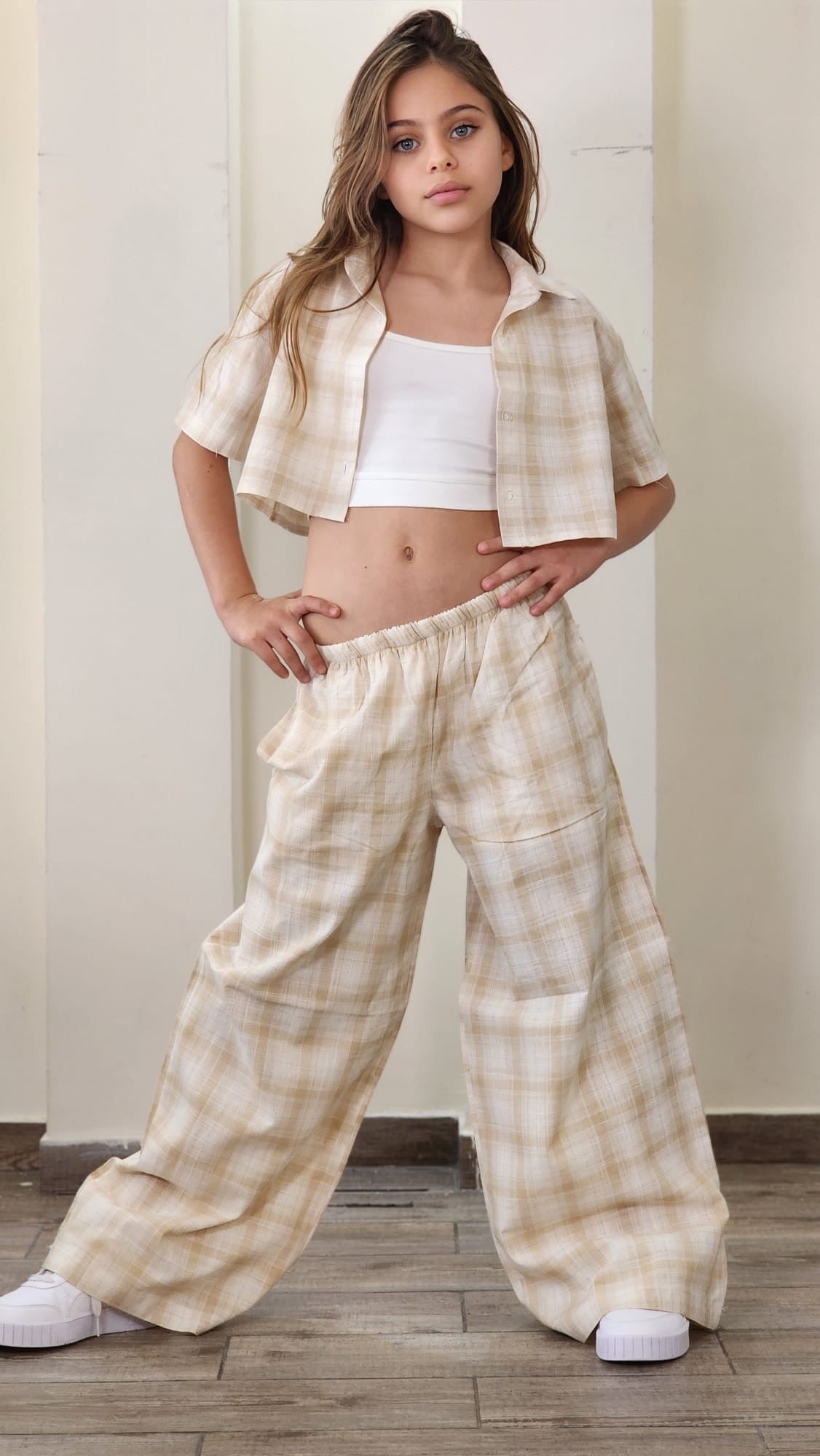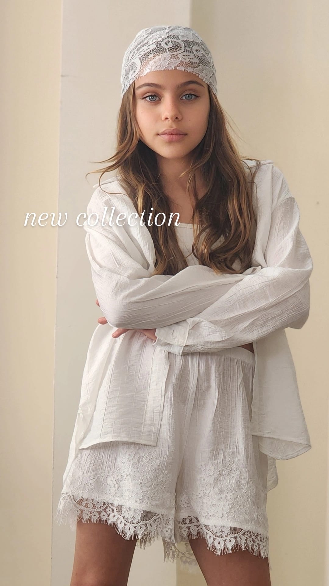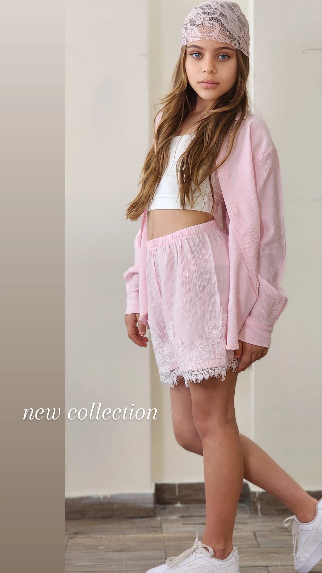סט חגיגי לבנות המשלב אלגנטיות ונוחות. הסט כולל שורט עם שילובי תחרה עדינים, ג'קט שרוול ארוך עם פרטי תחרה וגוזייה תואמת.