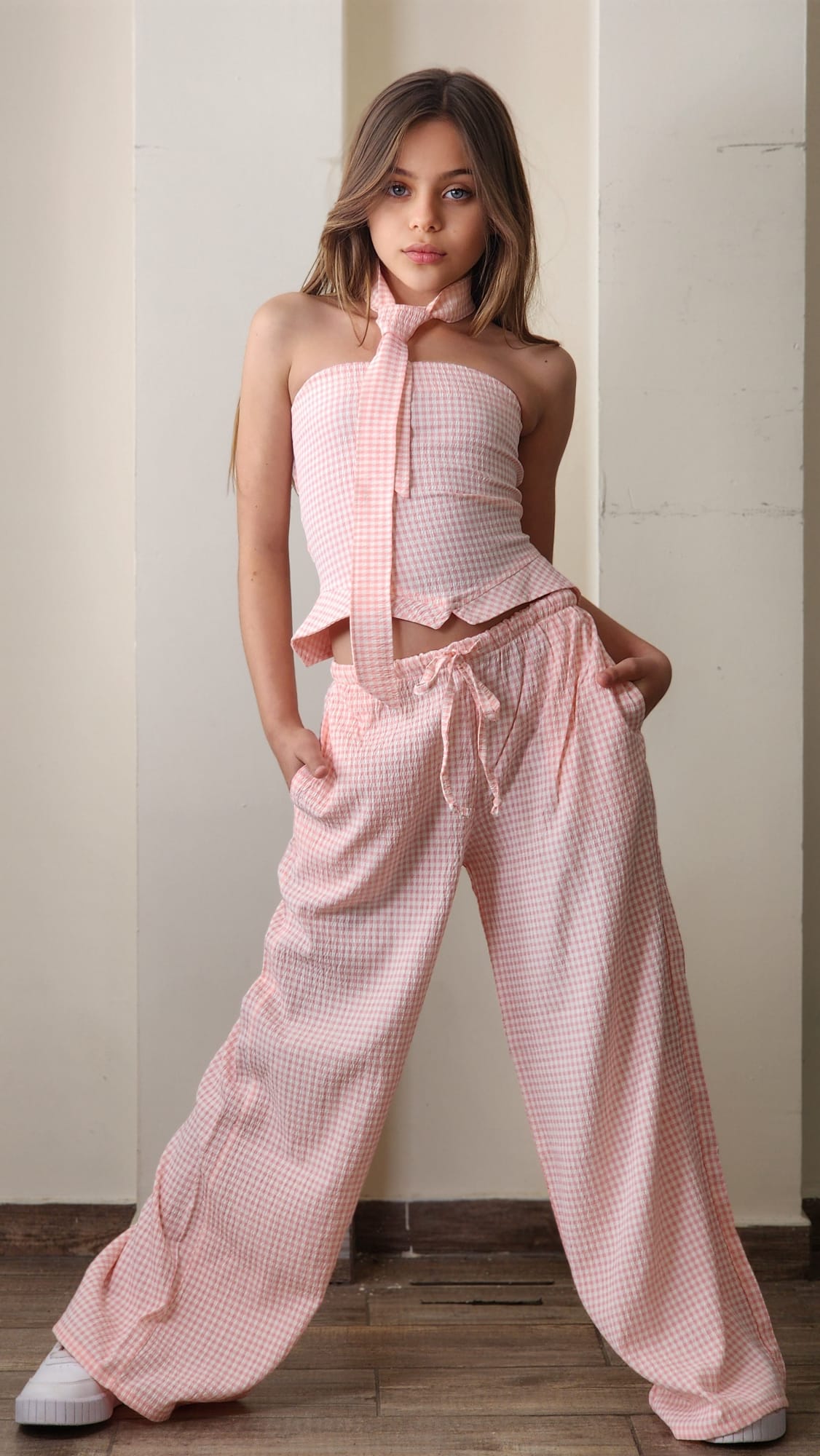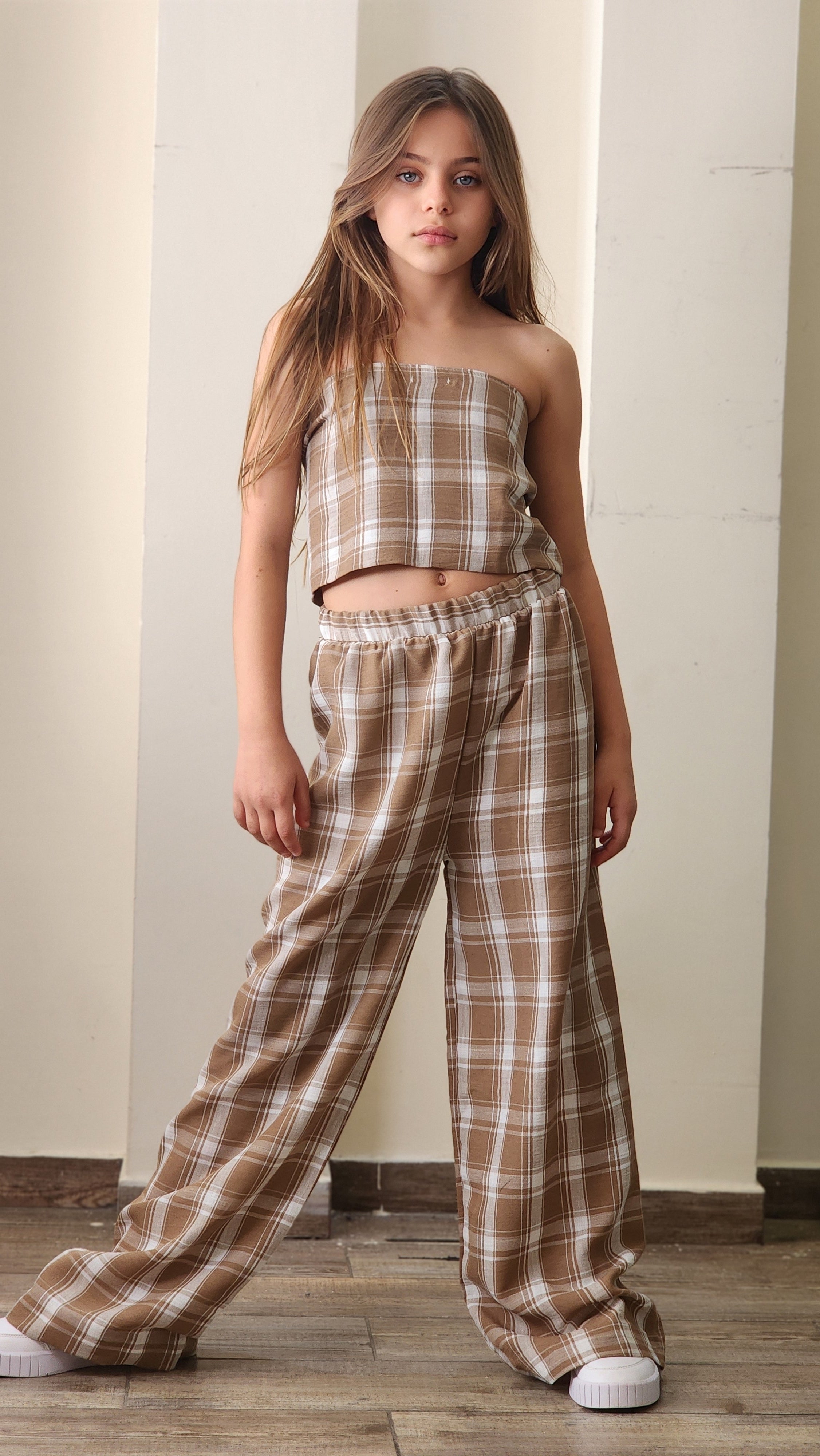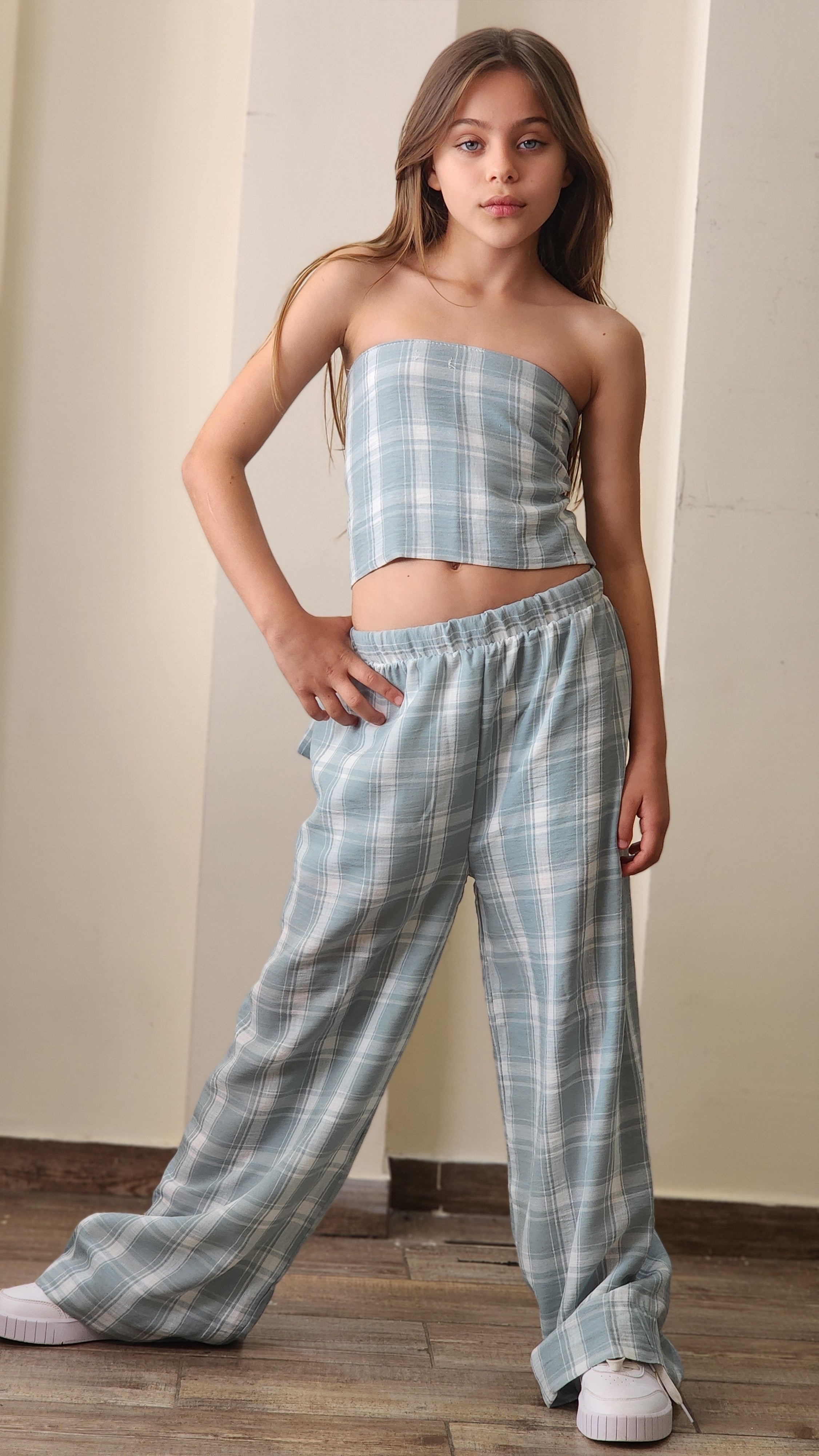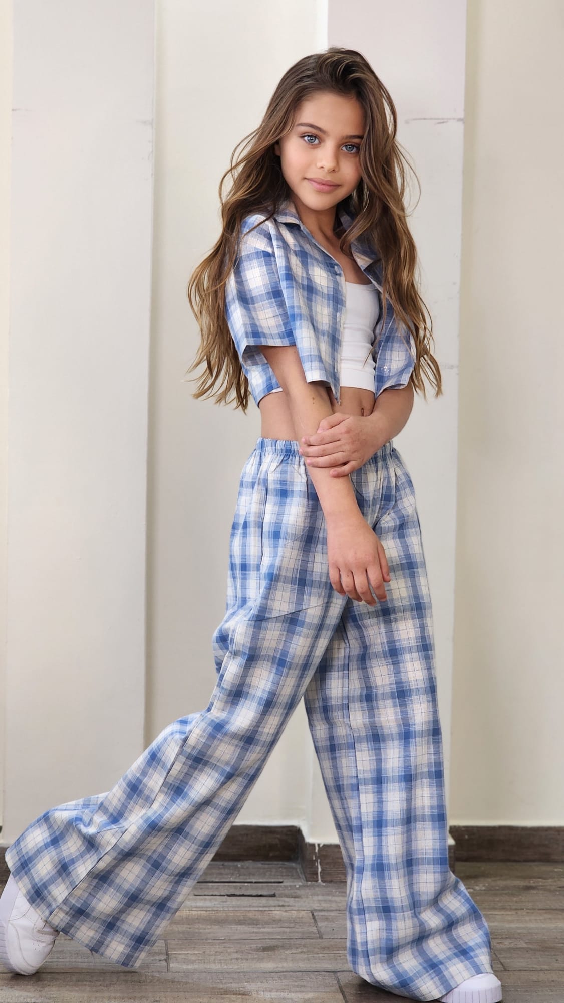 סט חגיגי לבנות המשלב אלגנטיות ונוחות. הסט כולל שורט עם שילובי תחרה עדינים, ג'קט שרוול ארוך עם פרטי תחרה וגוזייה תואמת.