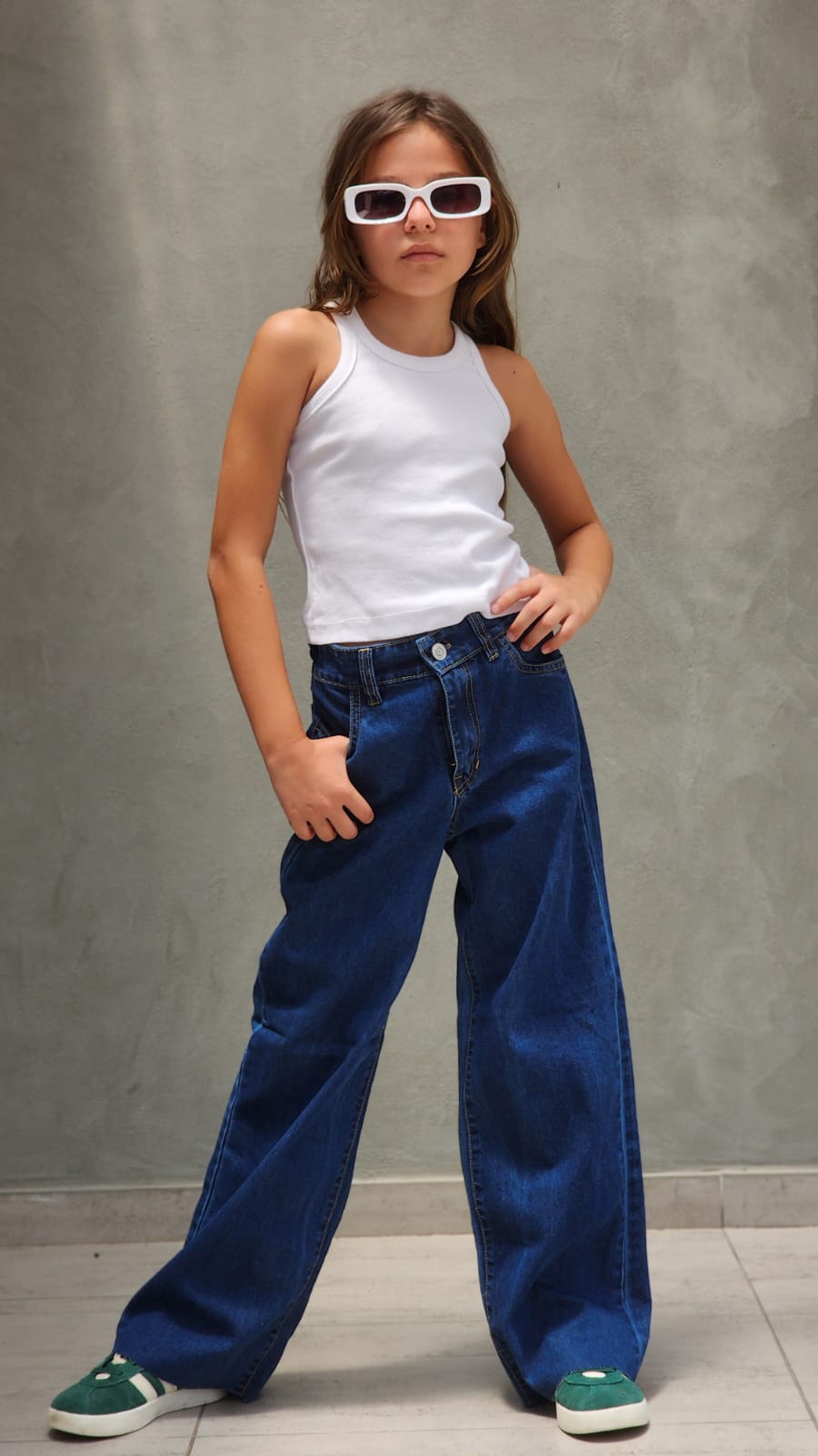 מכנס ג'ינס ארוך רחב עם גומי היריון
