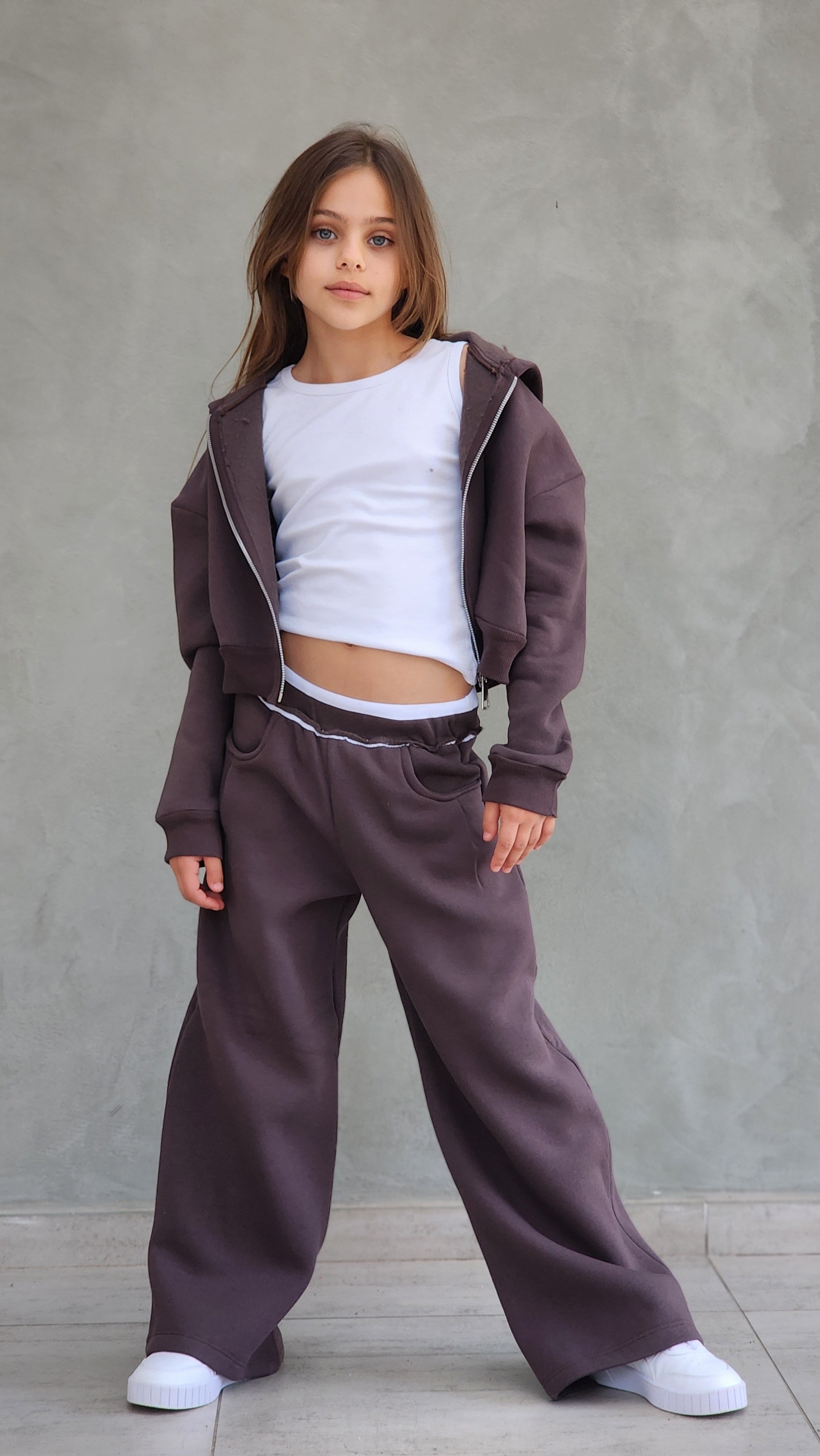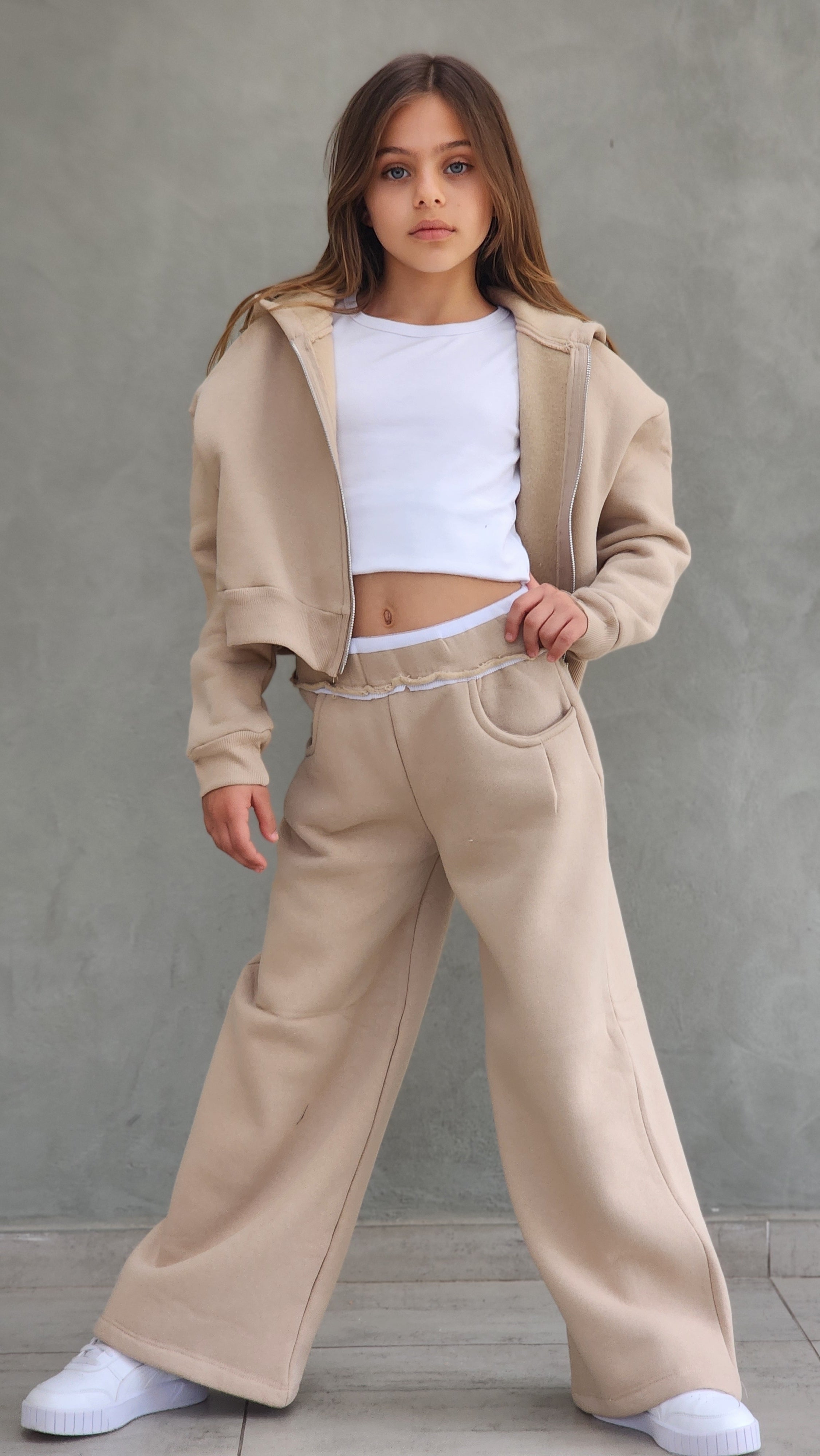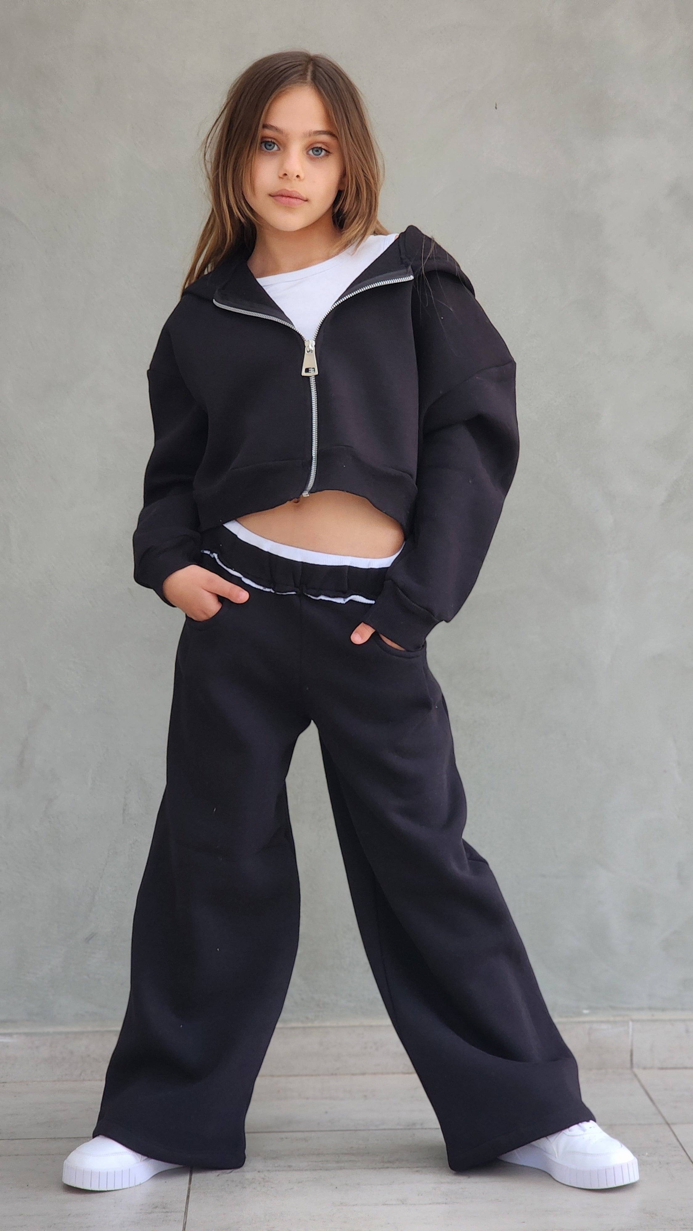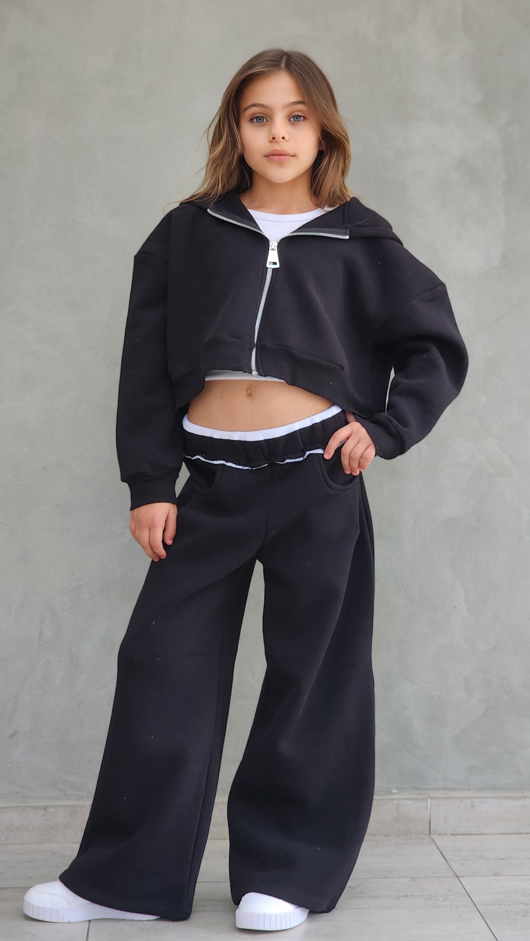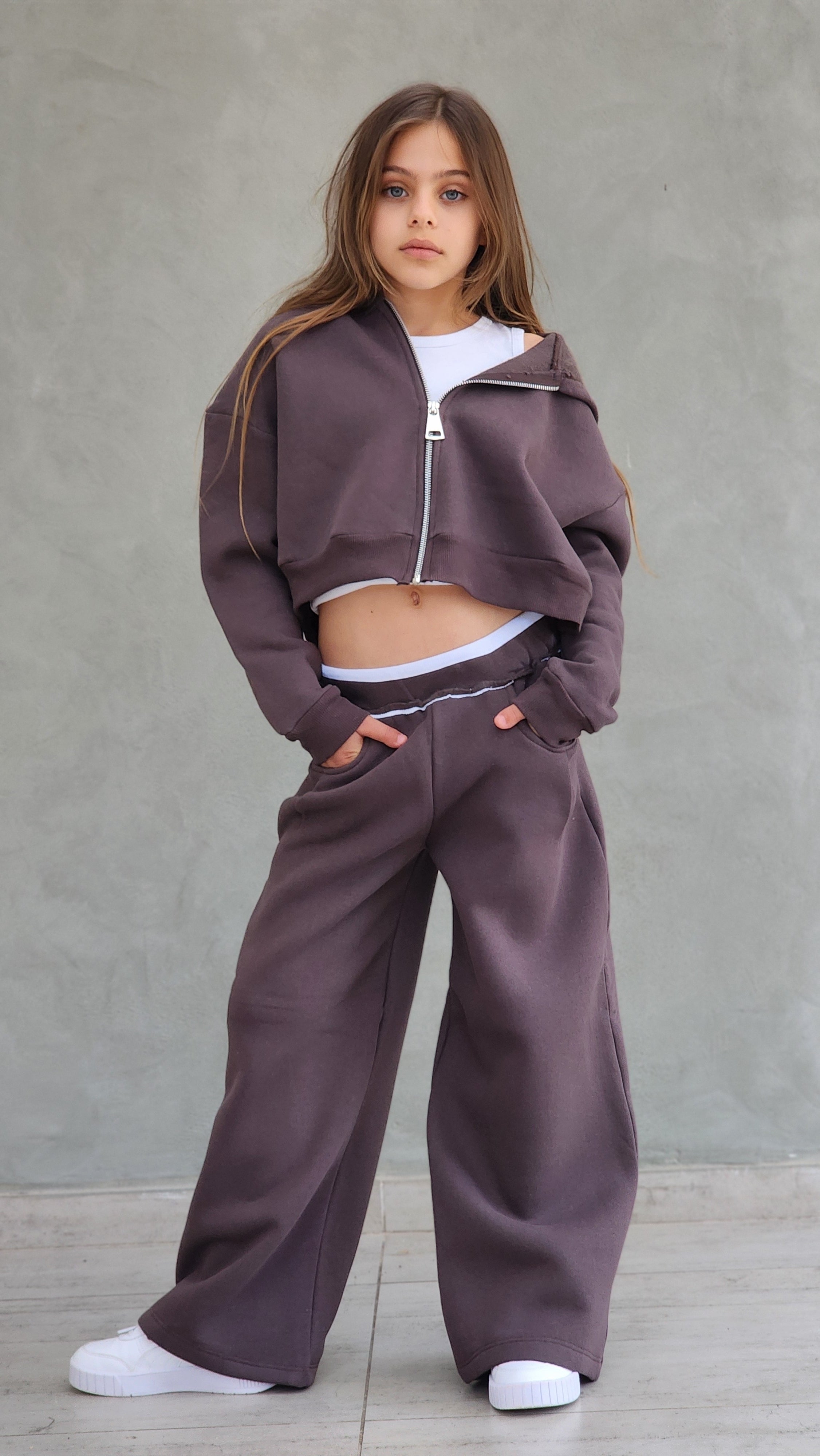 חליפת פוטר עבה,מכנס משולב חגורת ריב אנפיניש,ג'קט קפושון עם רוכסן מתכת ללא גופייה