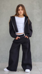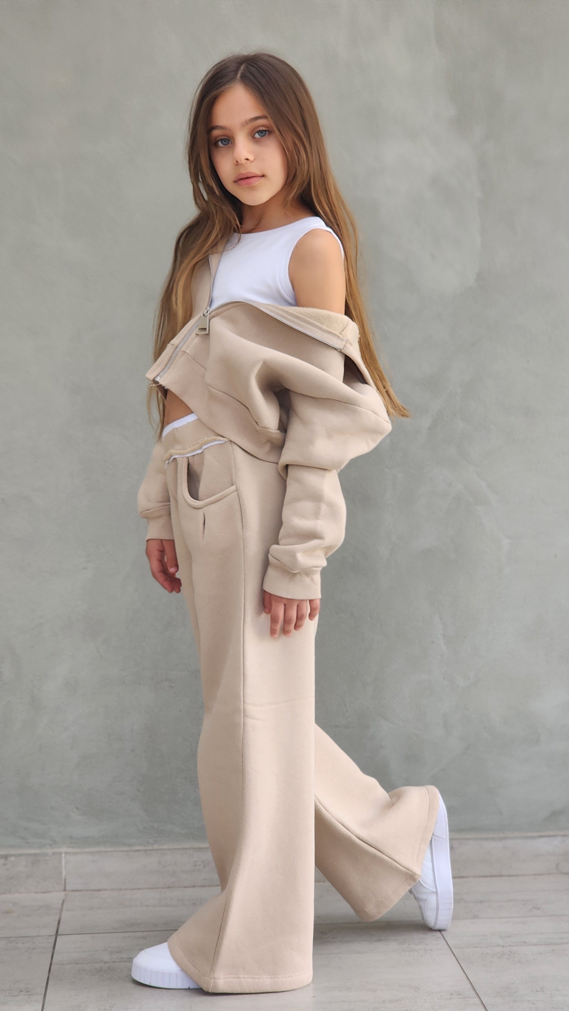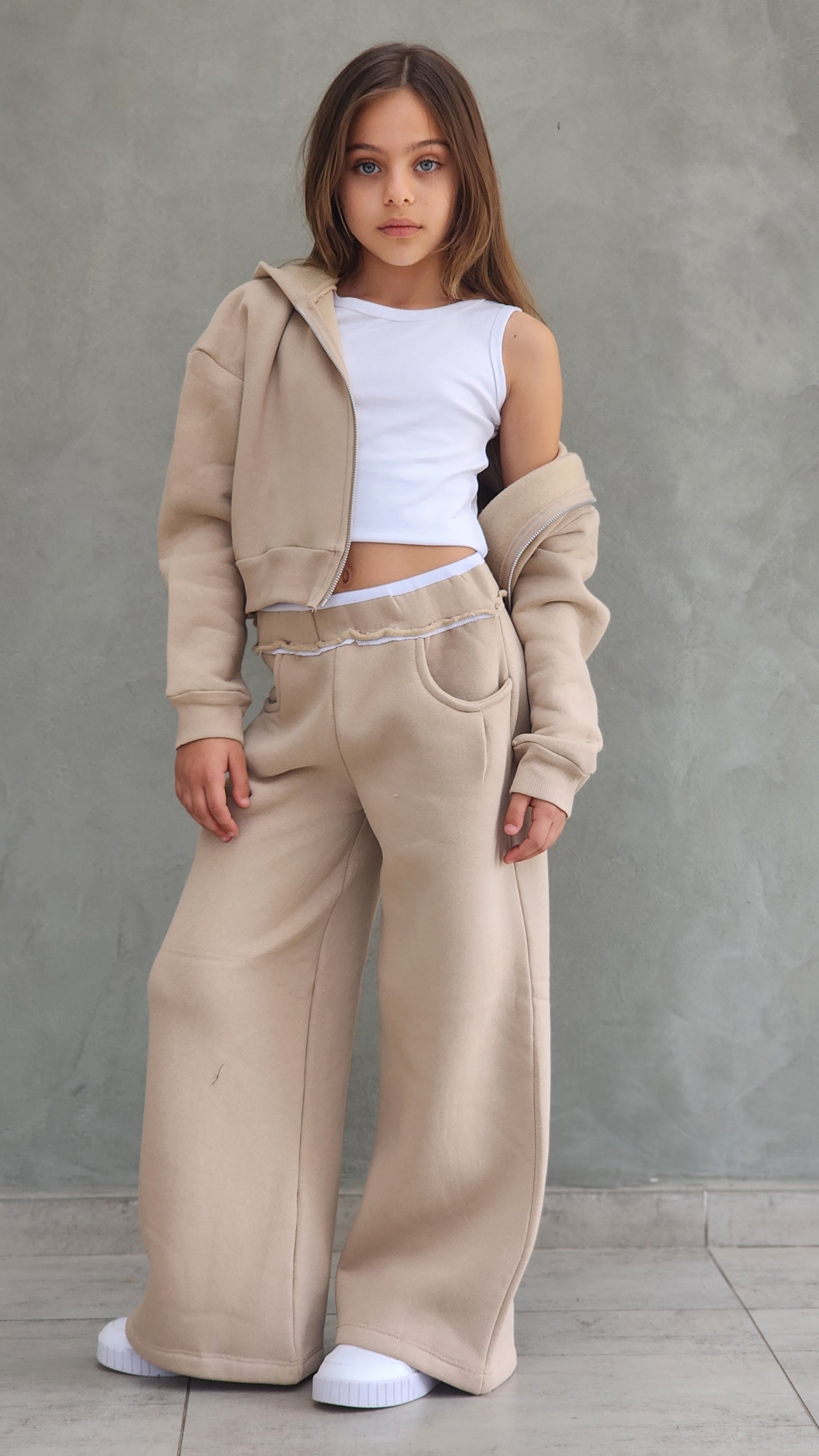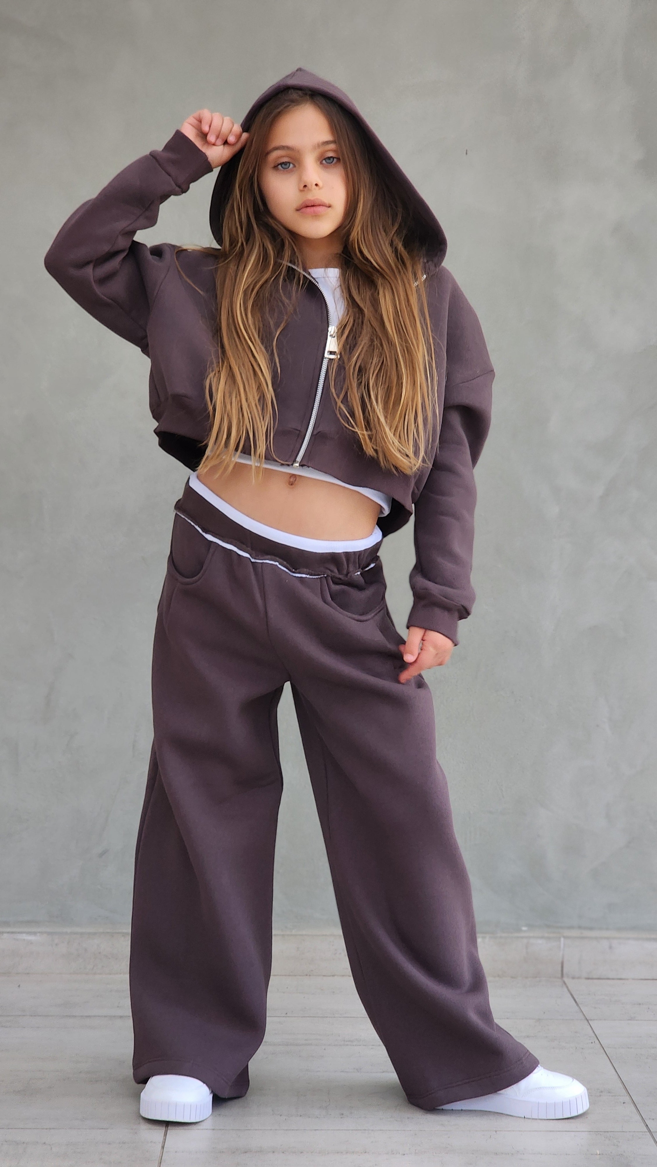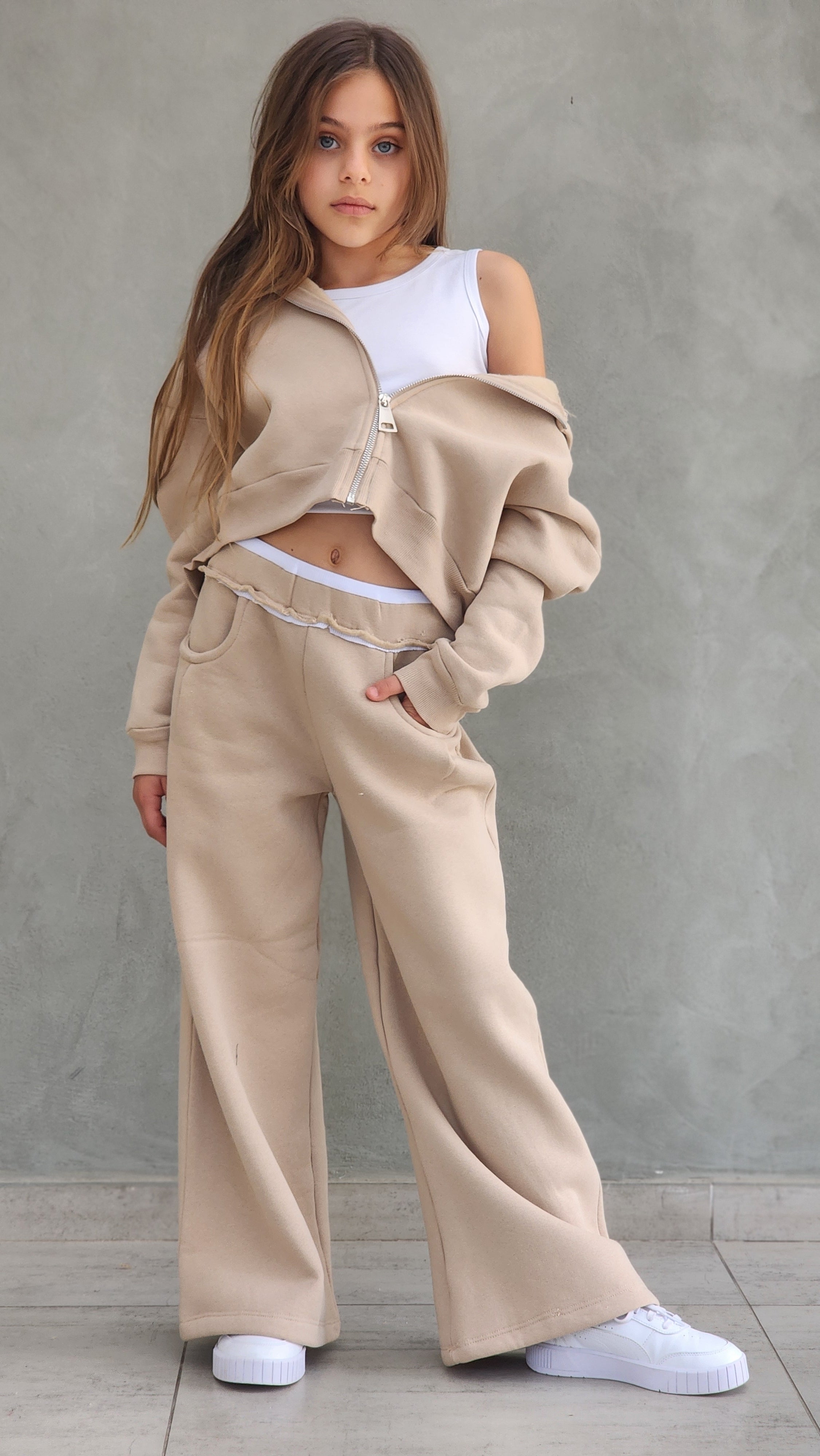 חליפת פוטר עבה,מכנס משולב חגורת ריב אנפיניש,ג'קט קפושון עם רוכסן מתכת ללא גופייה