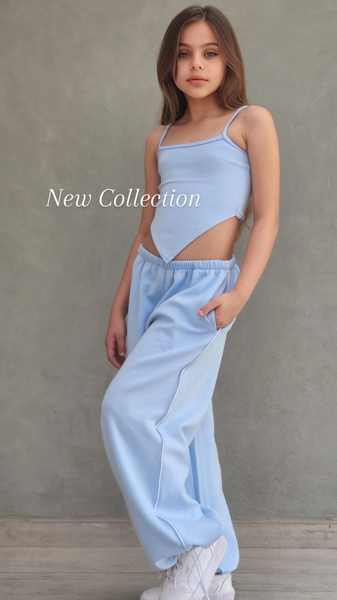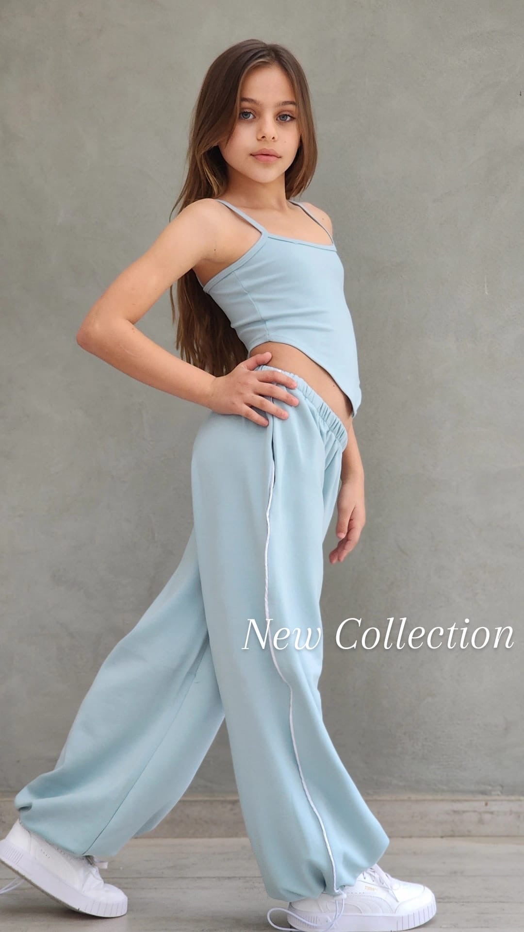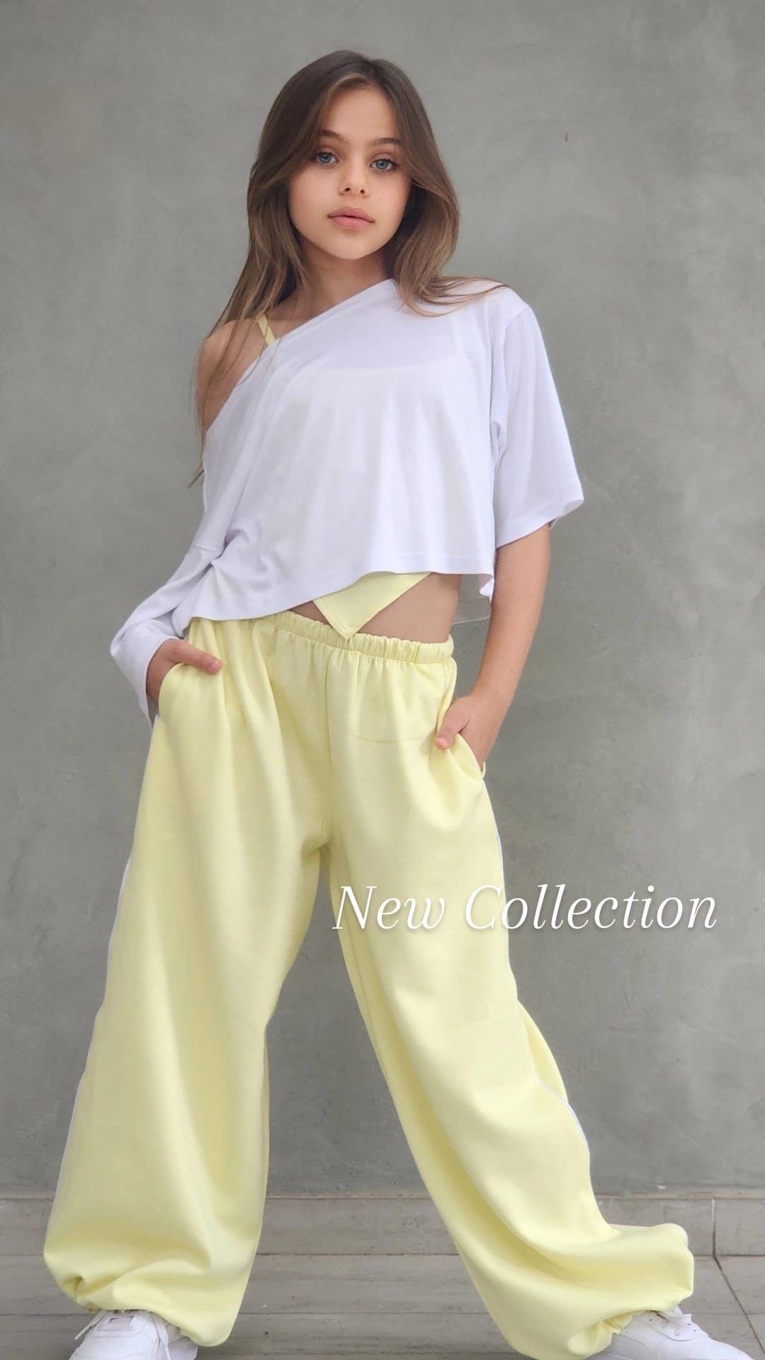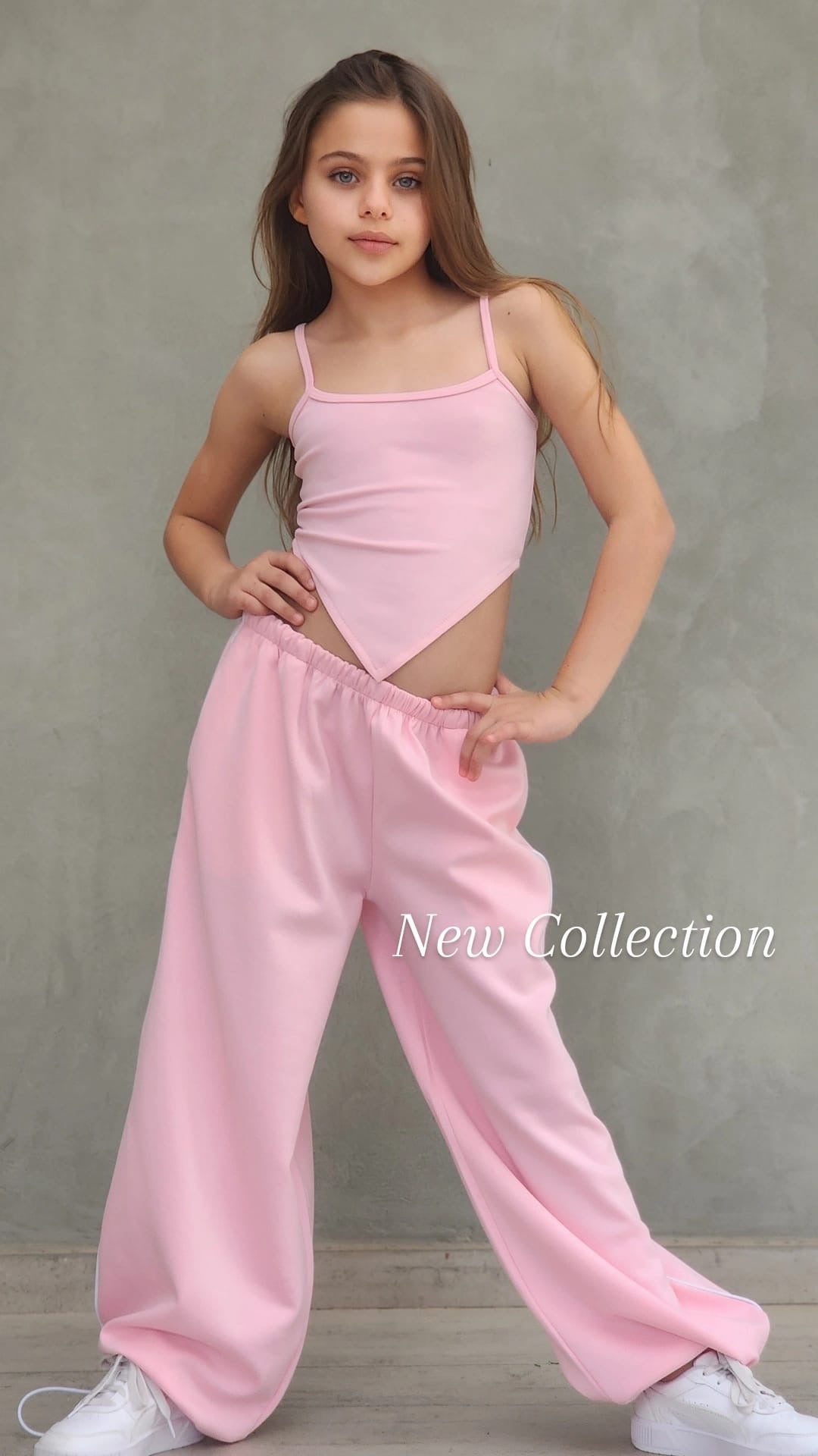 שילוב מושלם של נוחות וסטייל עכשווי. הסט כולל מכנס ספורט ארוך עם פס בצד, כיסים נוחים וגומי סטופר בסוף הרגל, גוזיית שפיץ אופנתית וחולצת קרופ לבנה מעל.