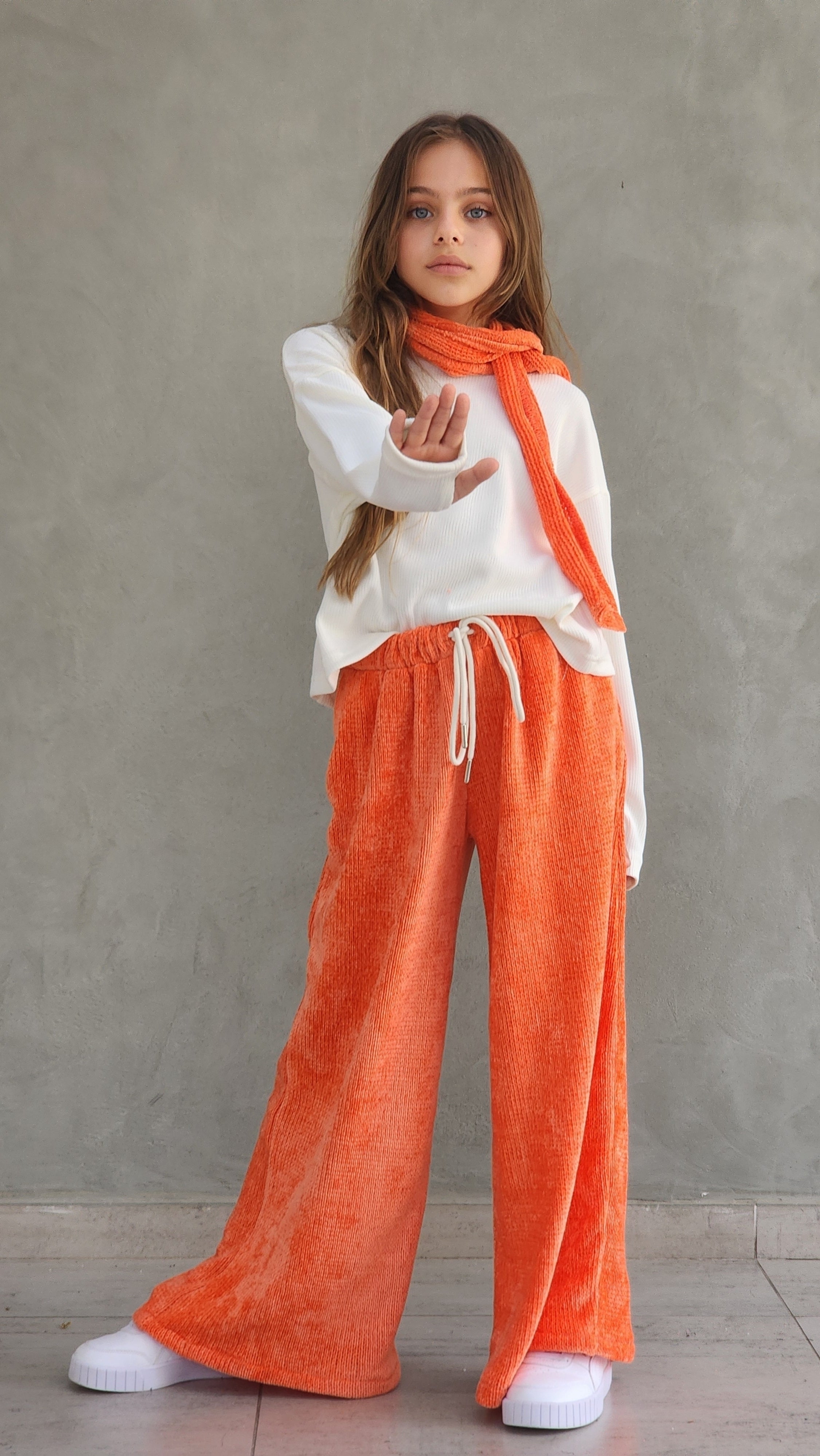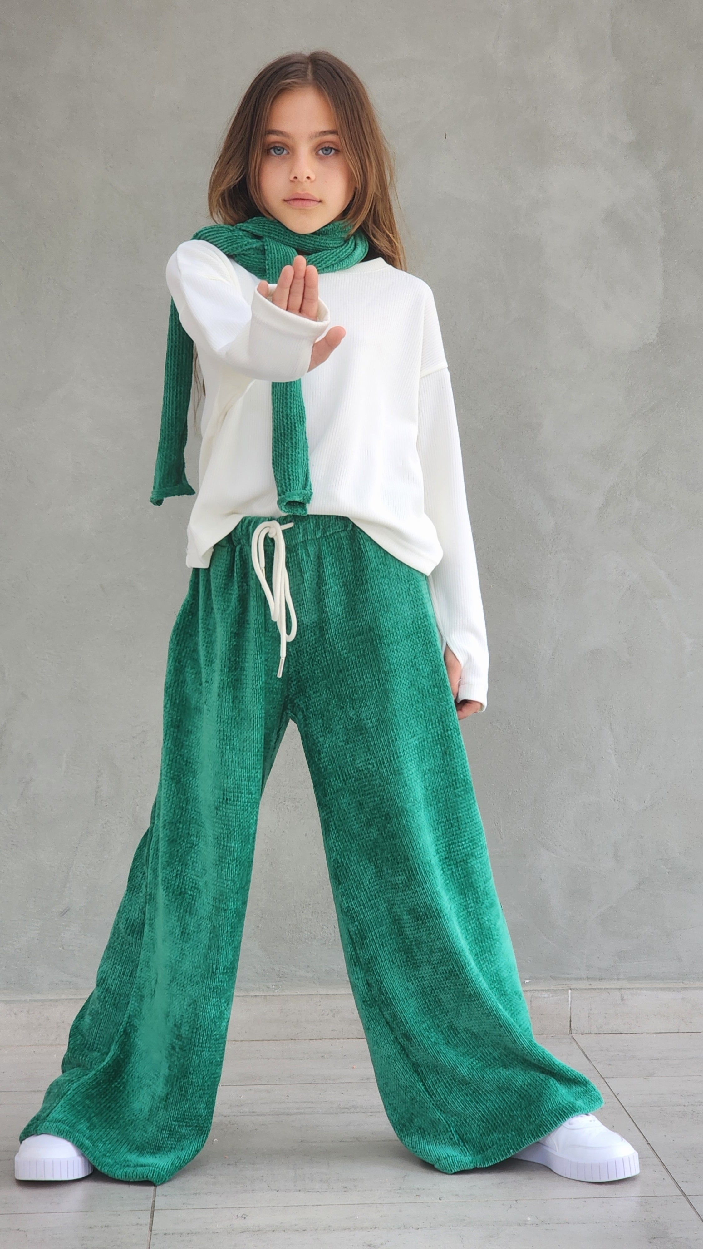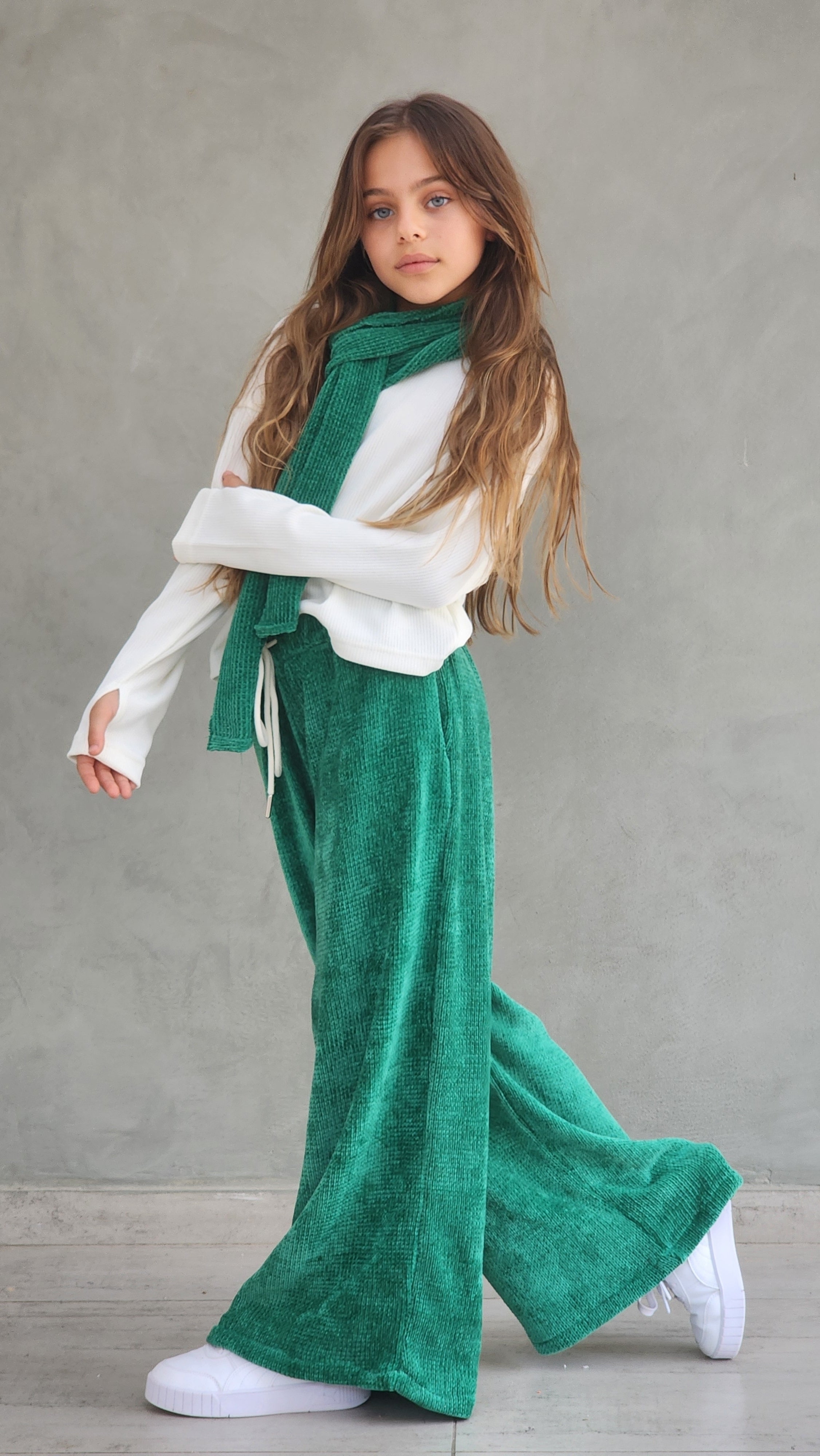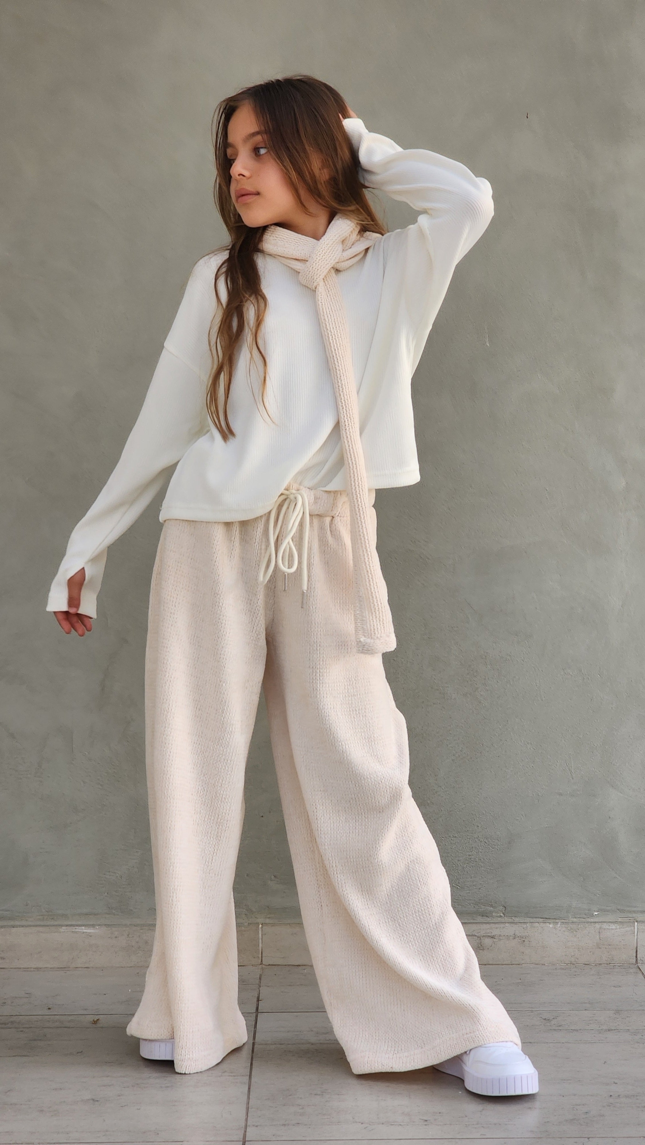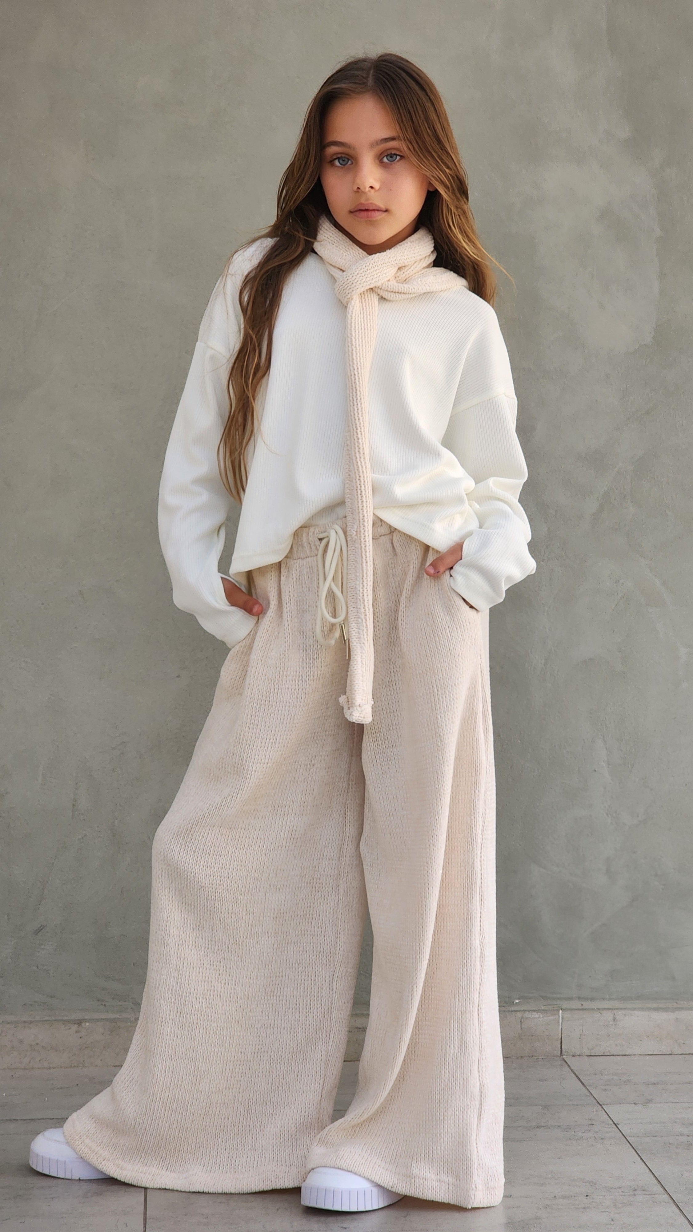 סט מכנס סריג עבה חולצה עם שרוול כפפה וצעיף