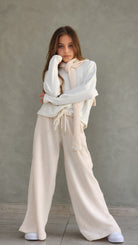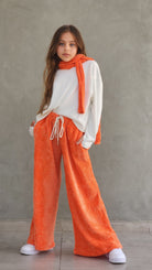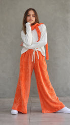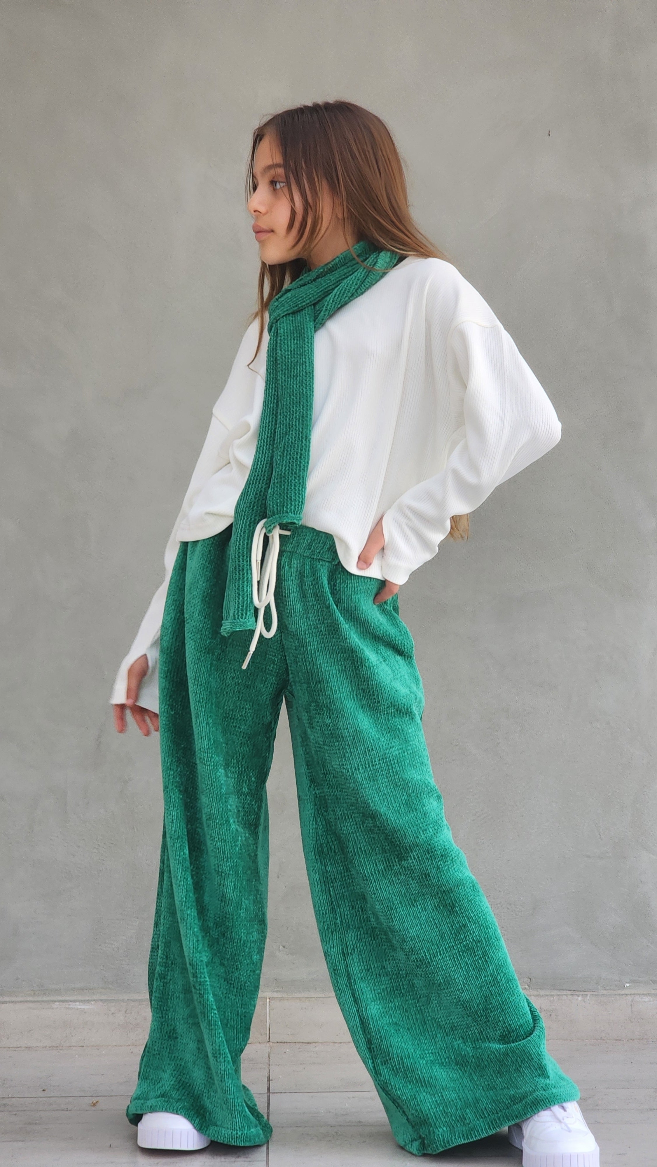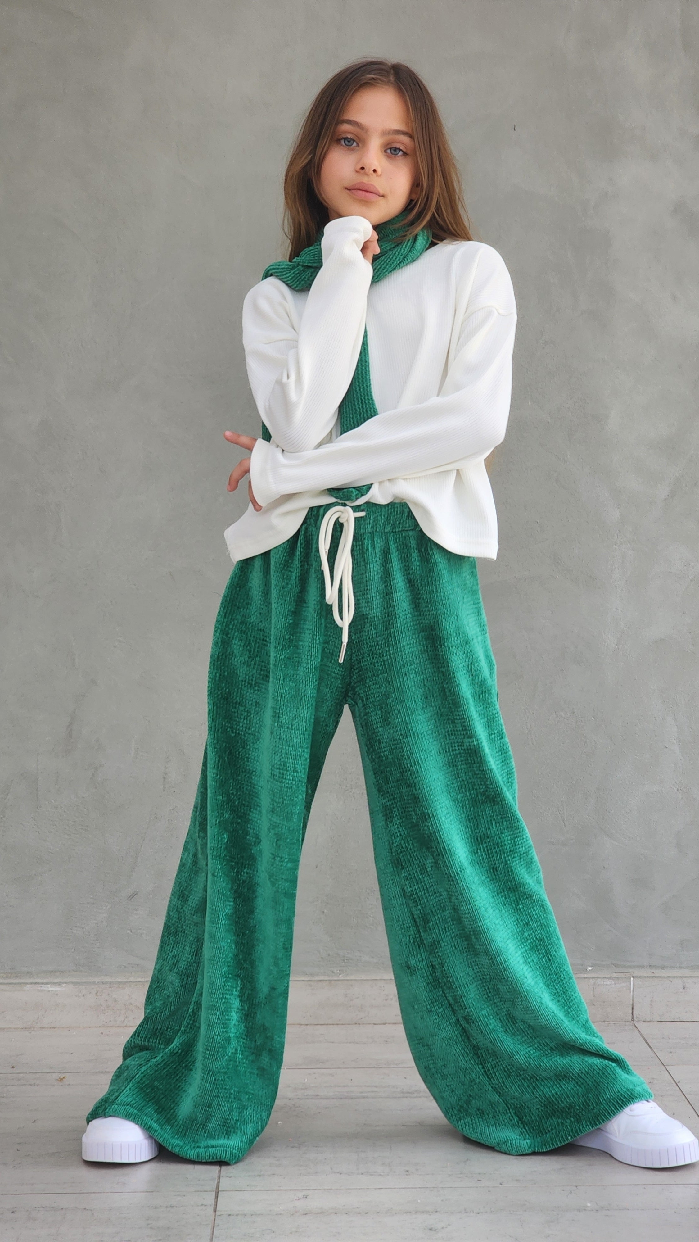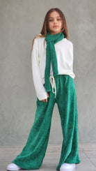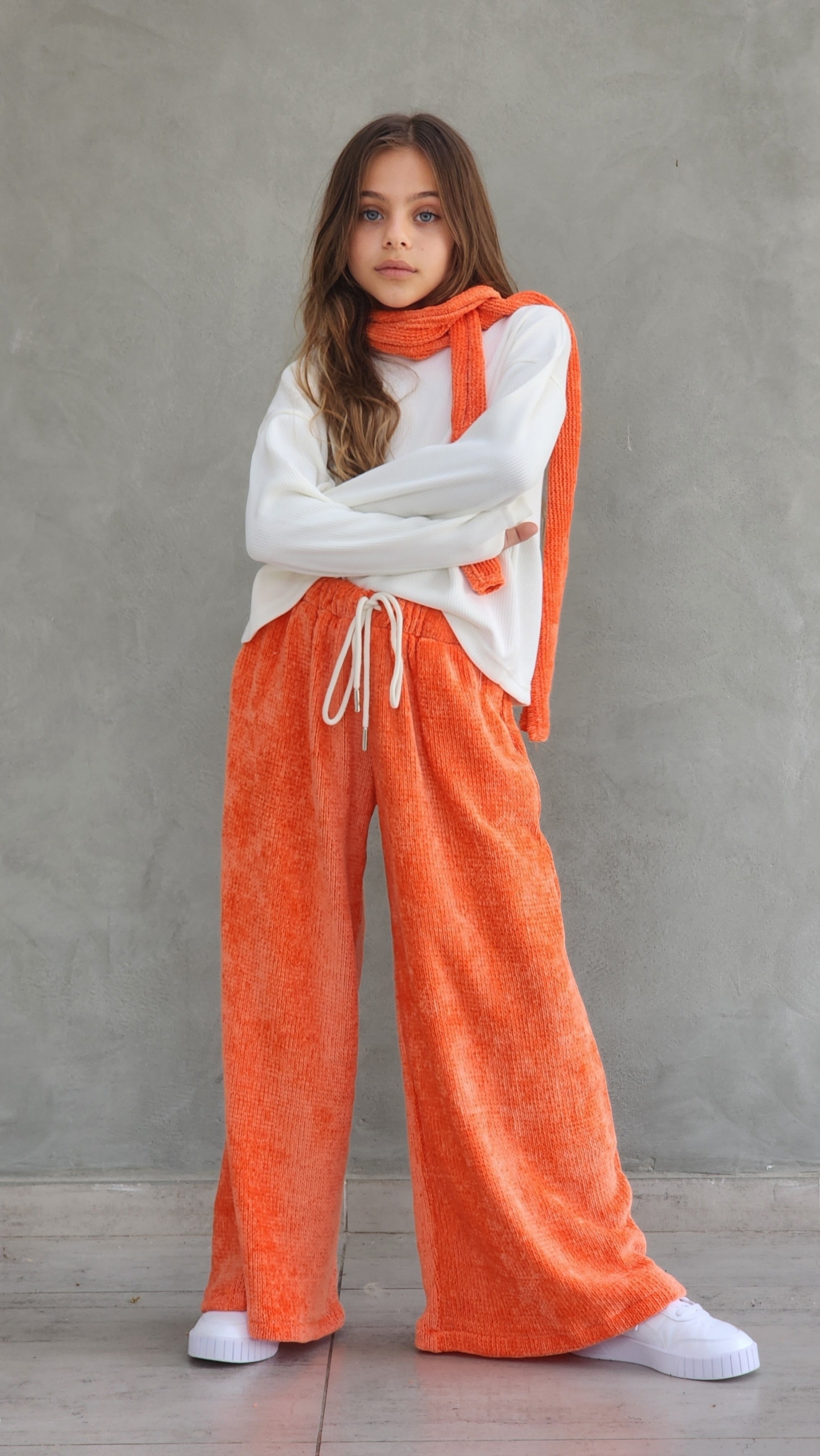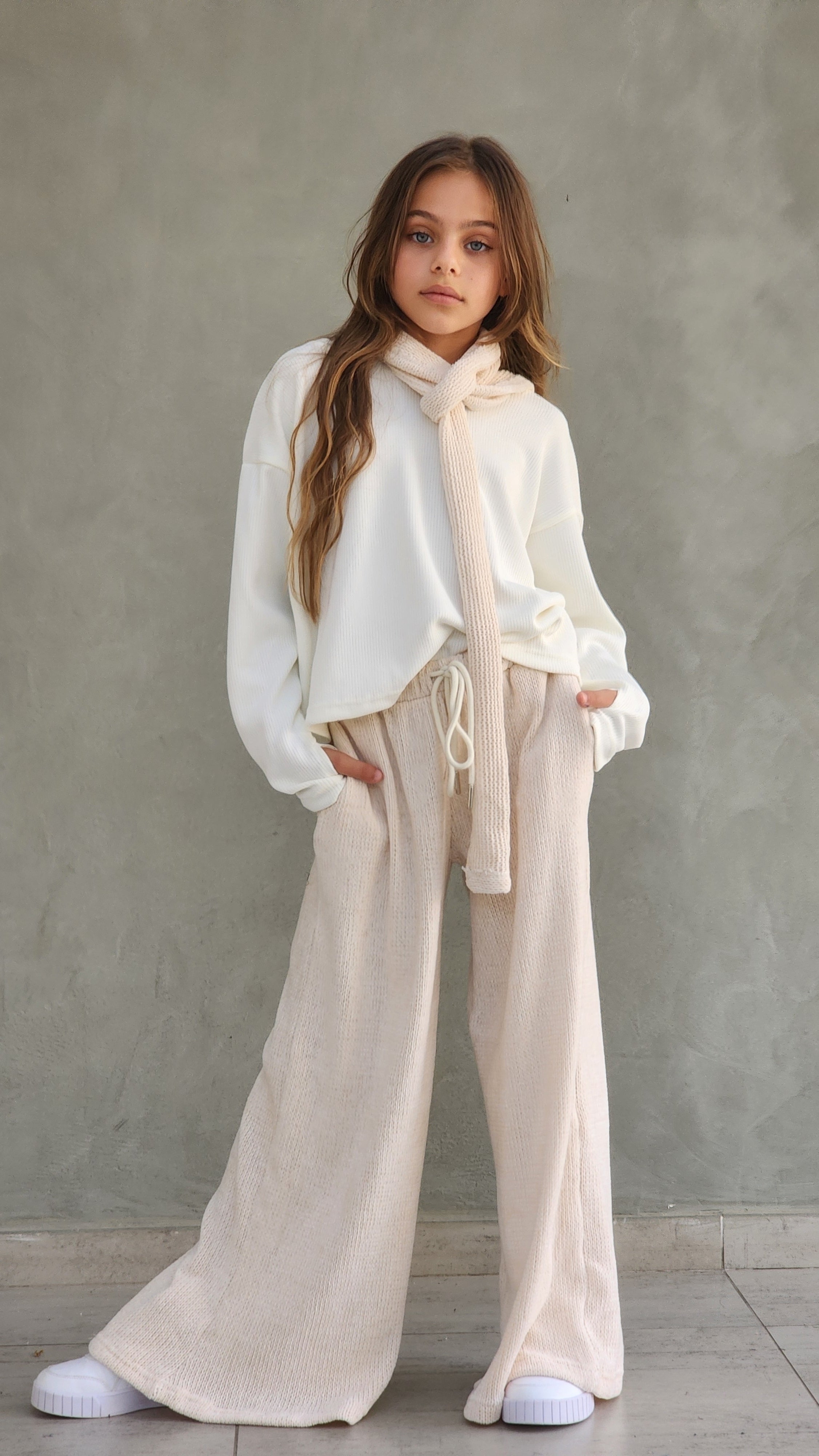 סט מכנס סריג עבה חולצה עם שרוול כפפה וצעיף