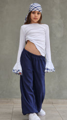 שלבי את הבנדנה בשיער לקוקו גבוה או קשרי אותה על התיק לנגיעה אופנתית נוספת. המכנס מתאים גם עם חולצות אחרות מהארון לגיוון מקסימלי.