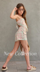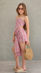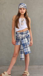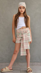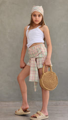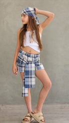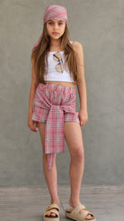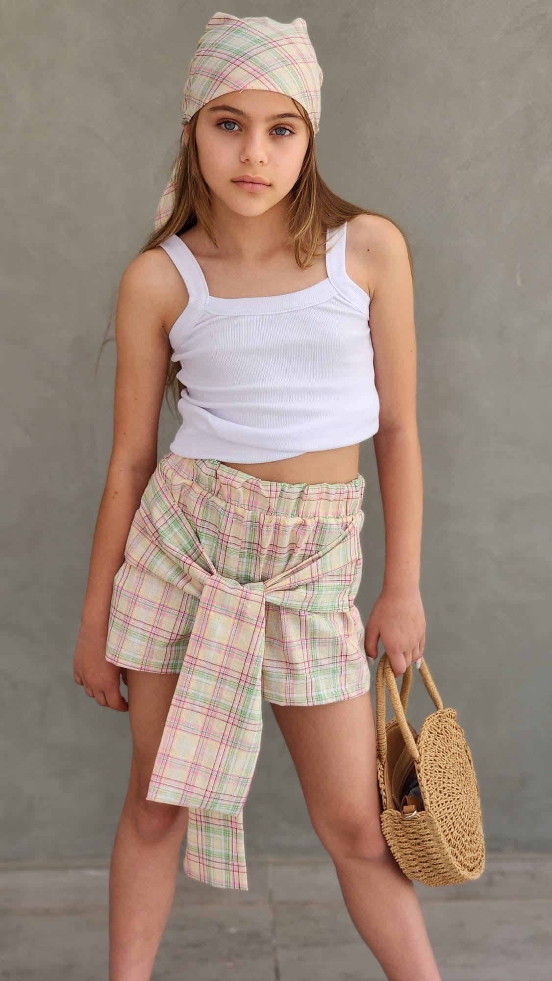 סט שורט משבצות עם בנדנה וגופיית ריב לילדות - קל, צבעוני ומושלם לקיץ