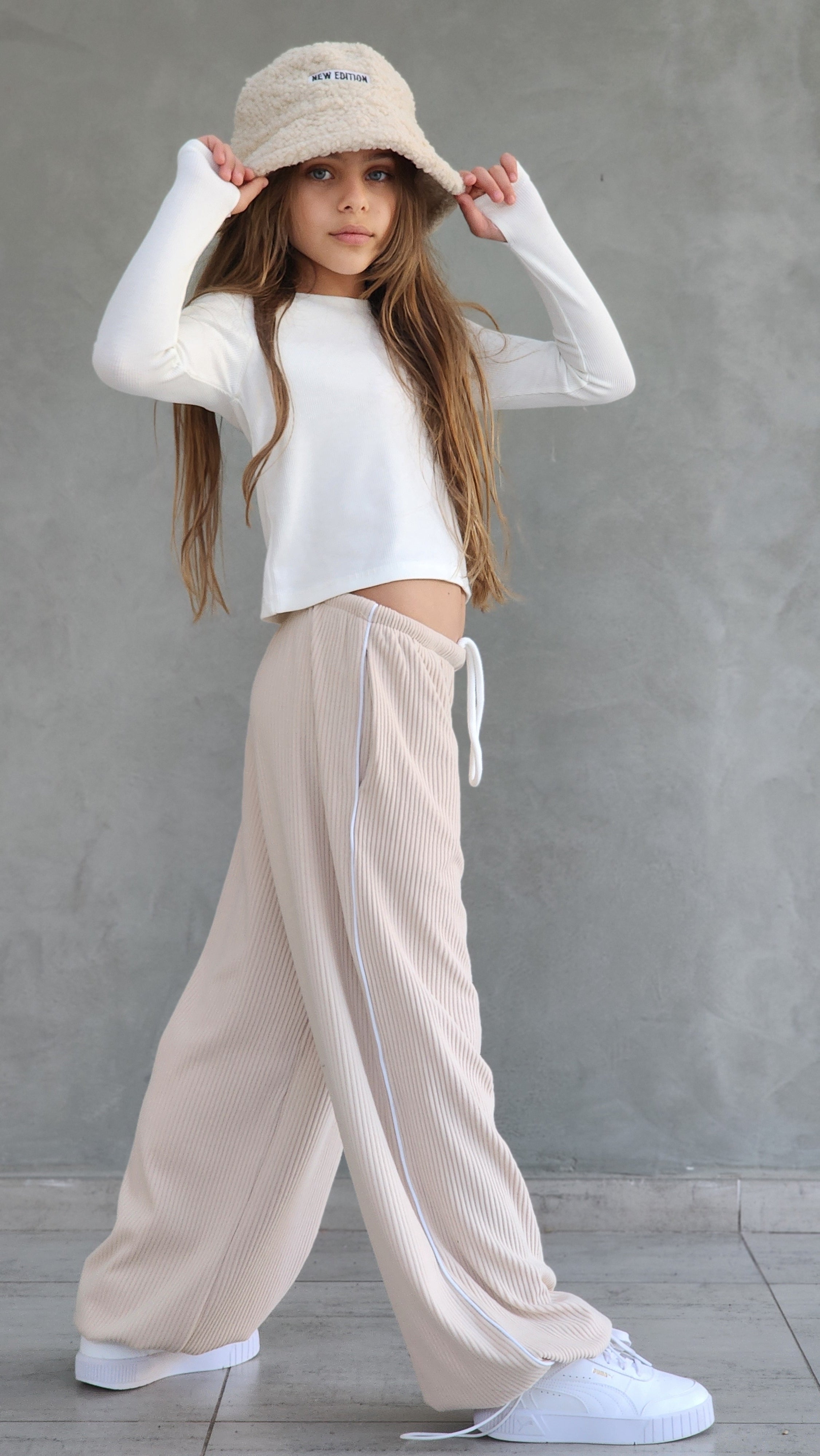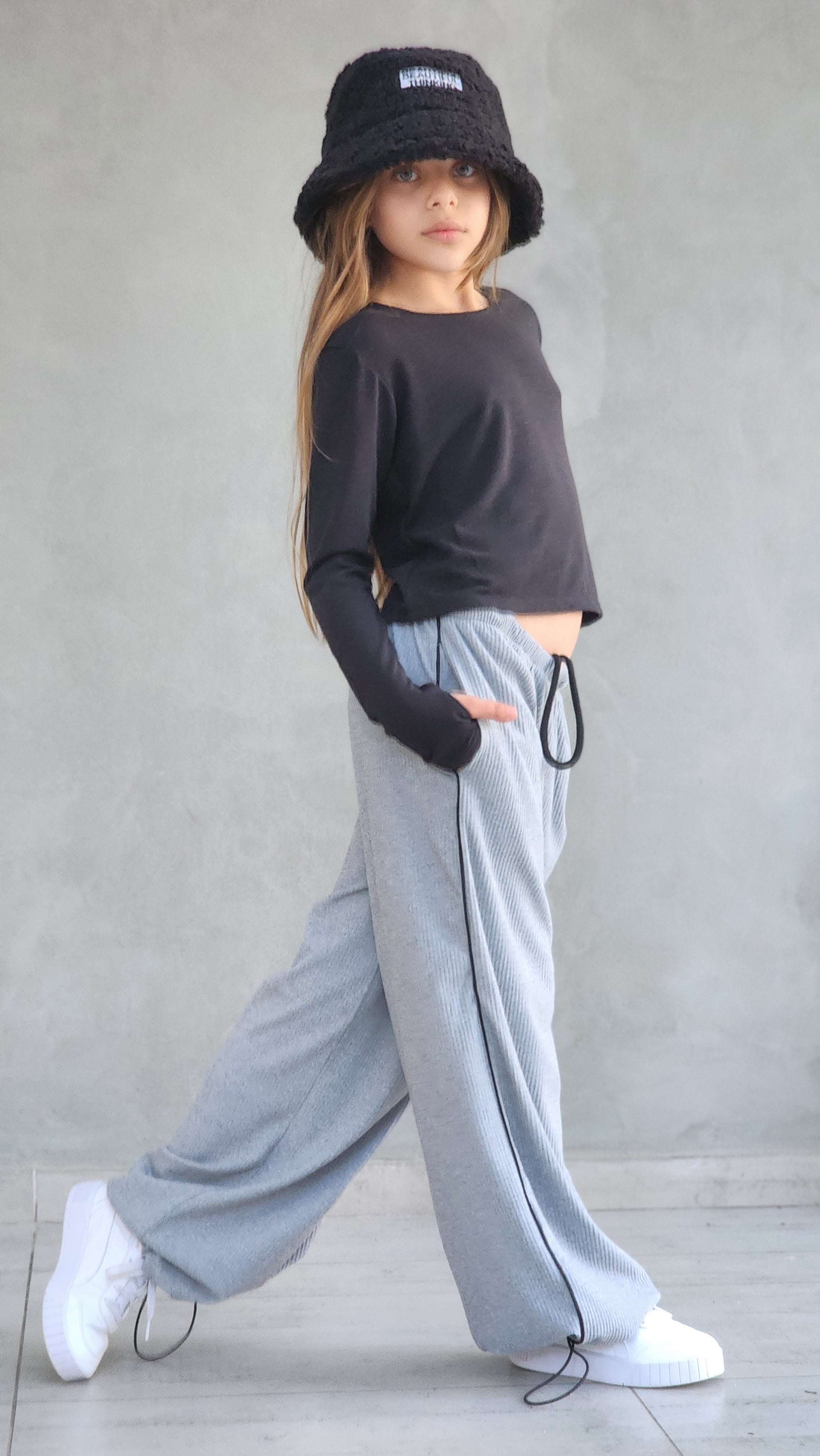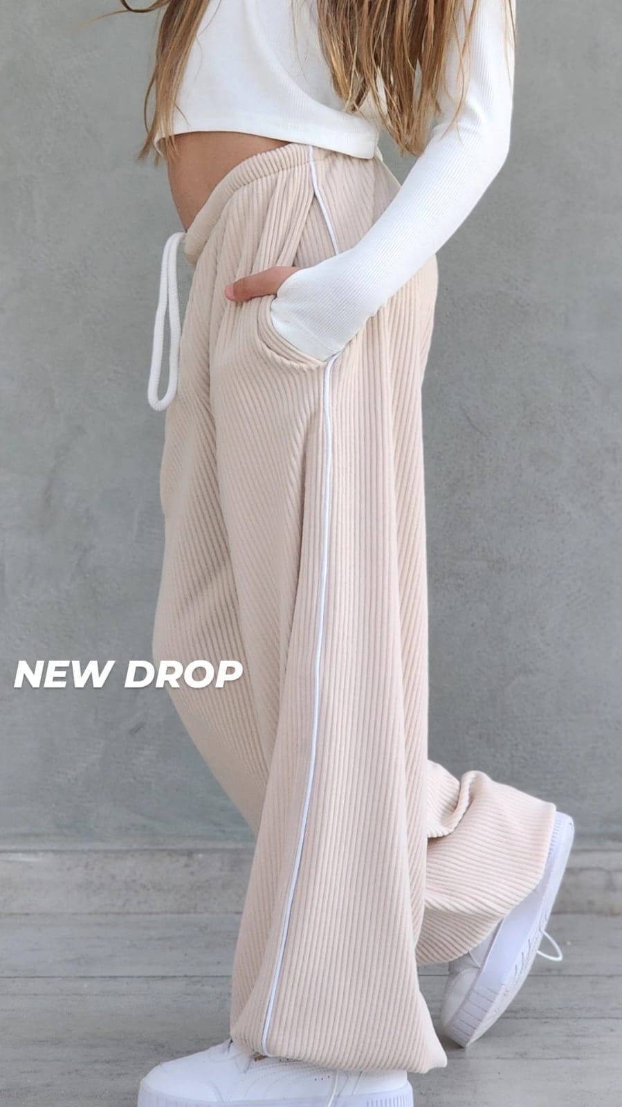 מכנס סרוג דמוי קורדרוי עם שרוך וגומי סטופר ברגליים