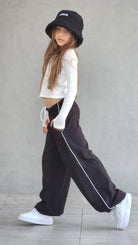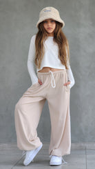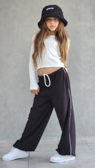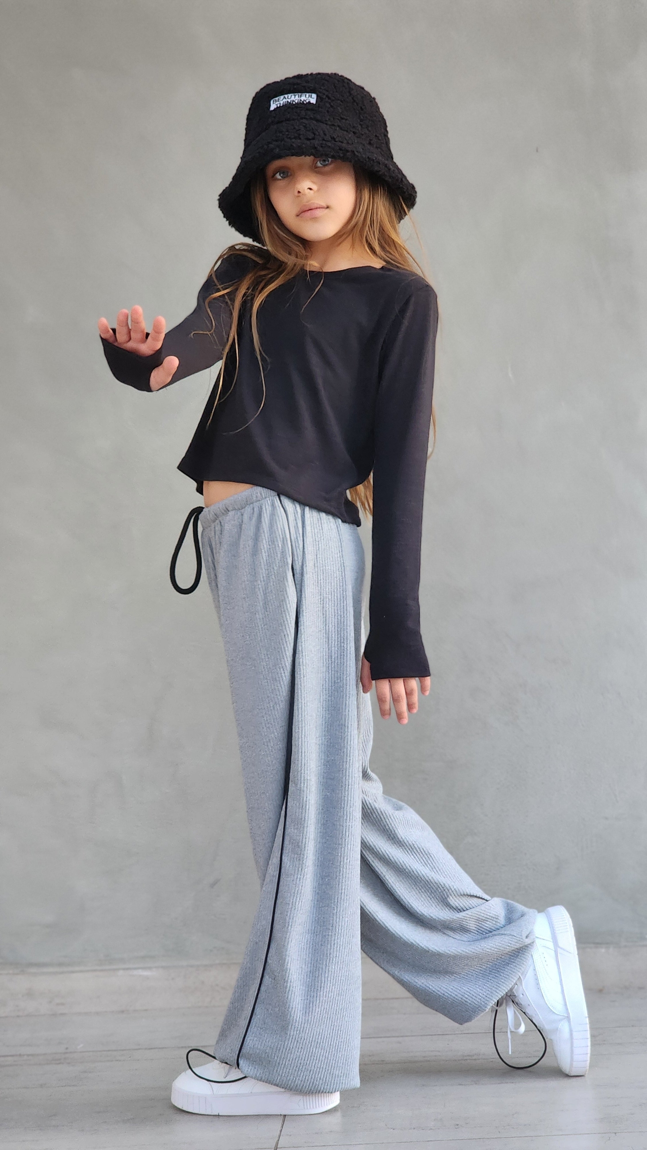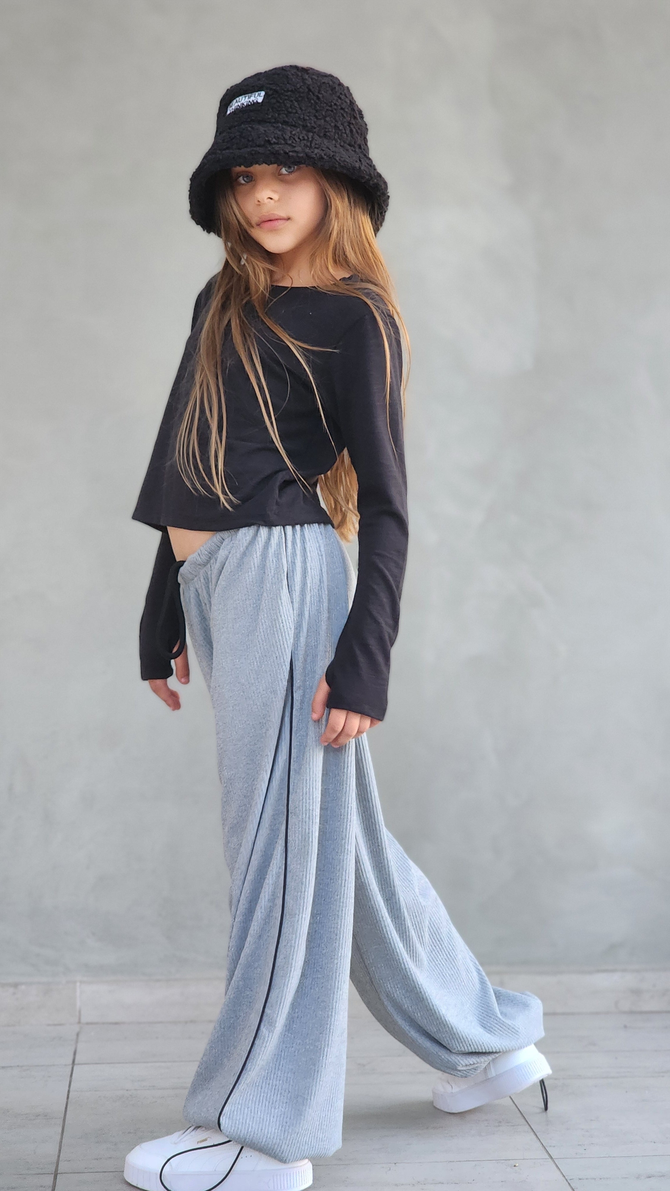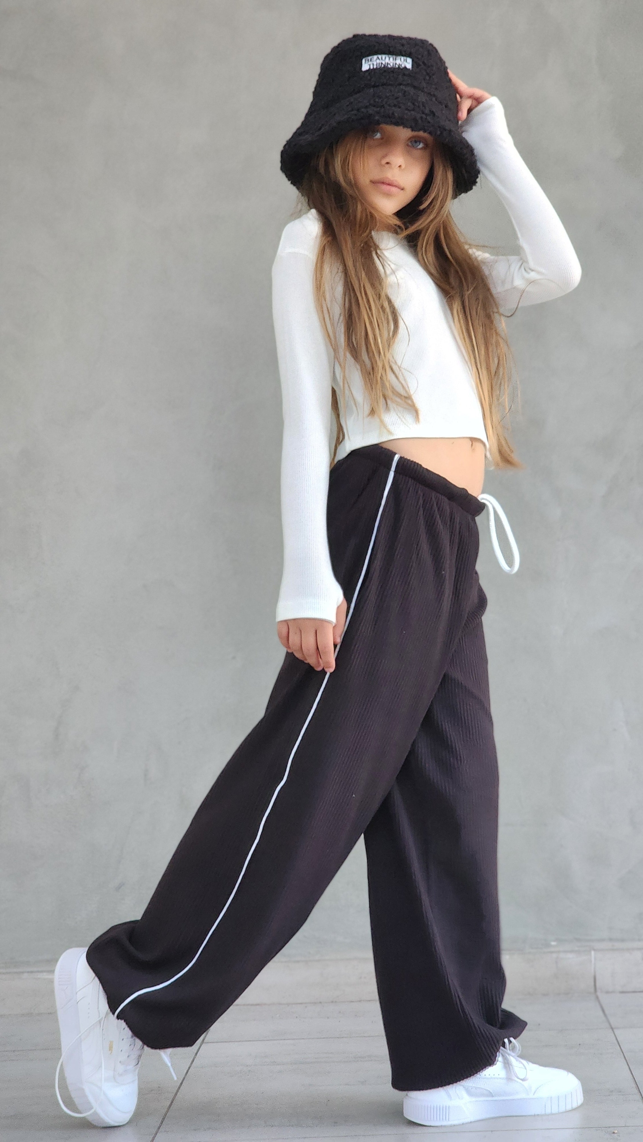 מכנס סרוג דמוי קורדרוי עם שרוך וגומי סטופר ברגליים
