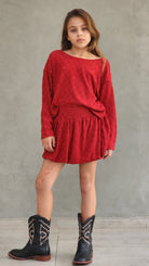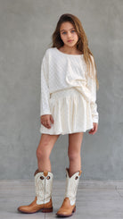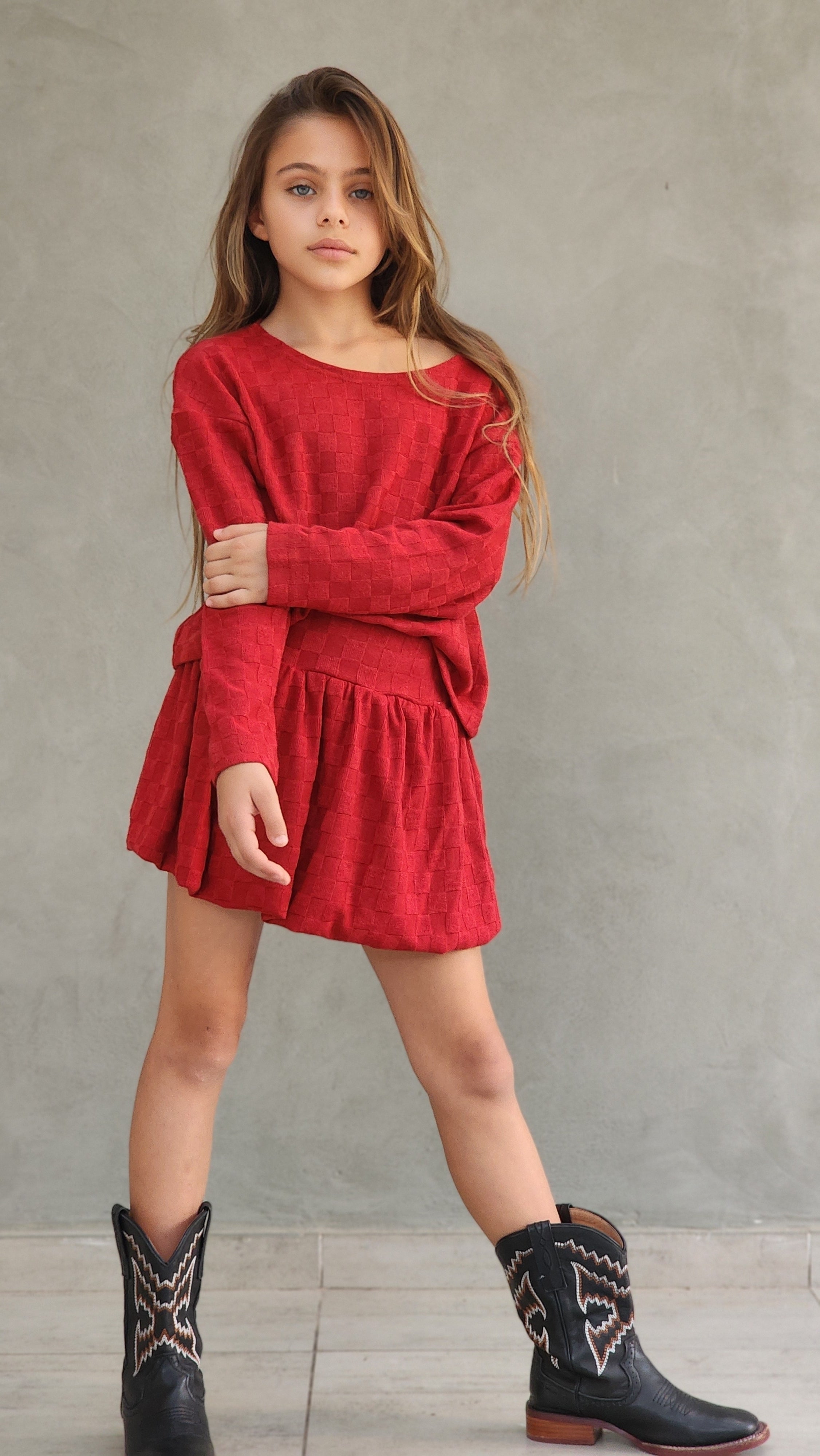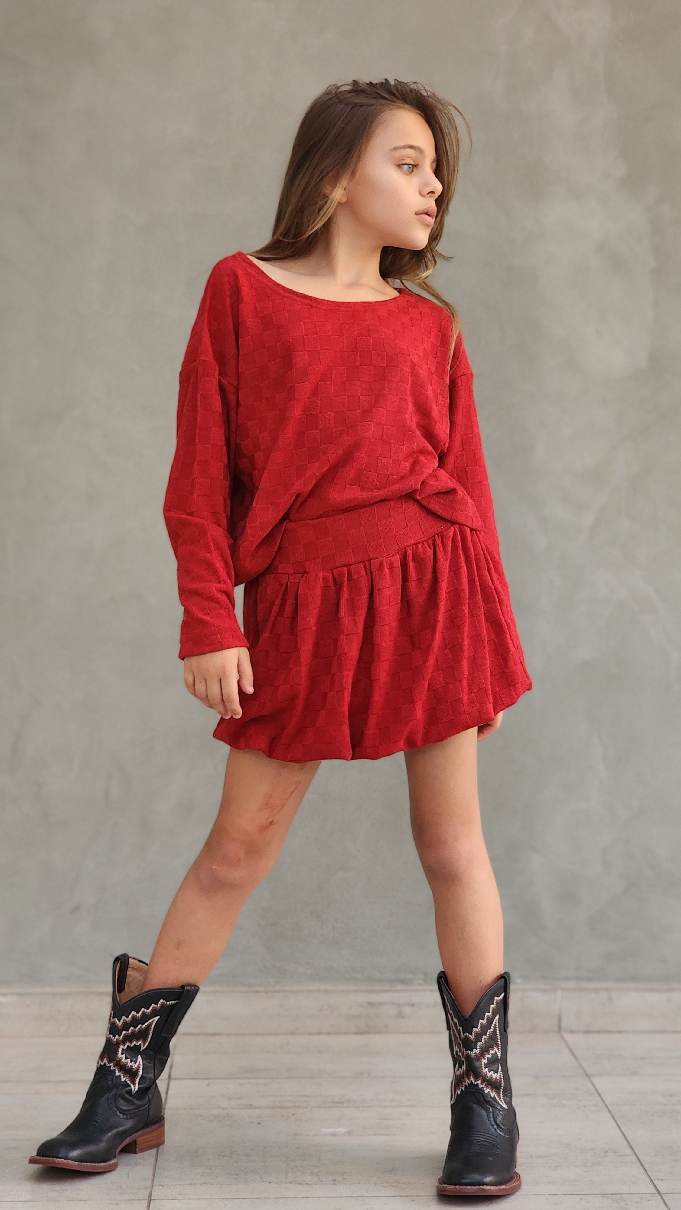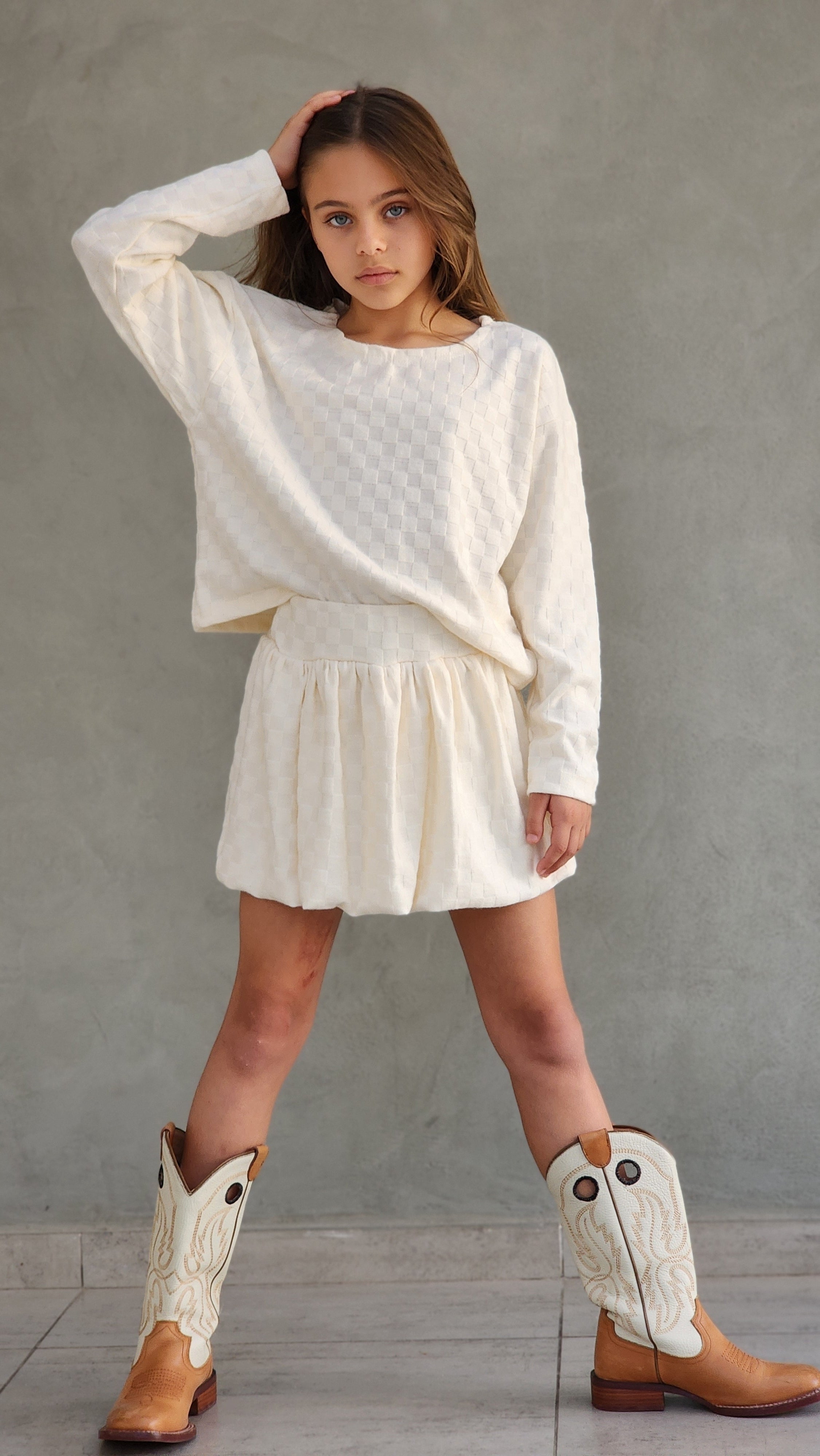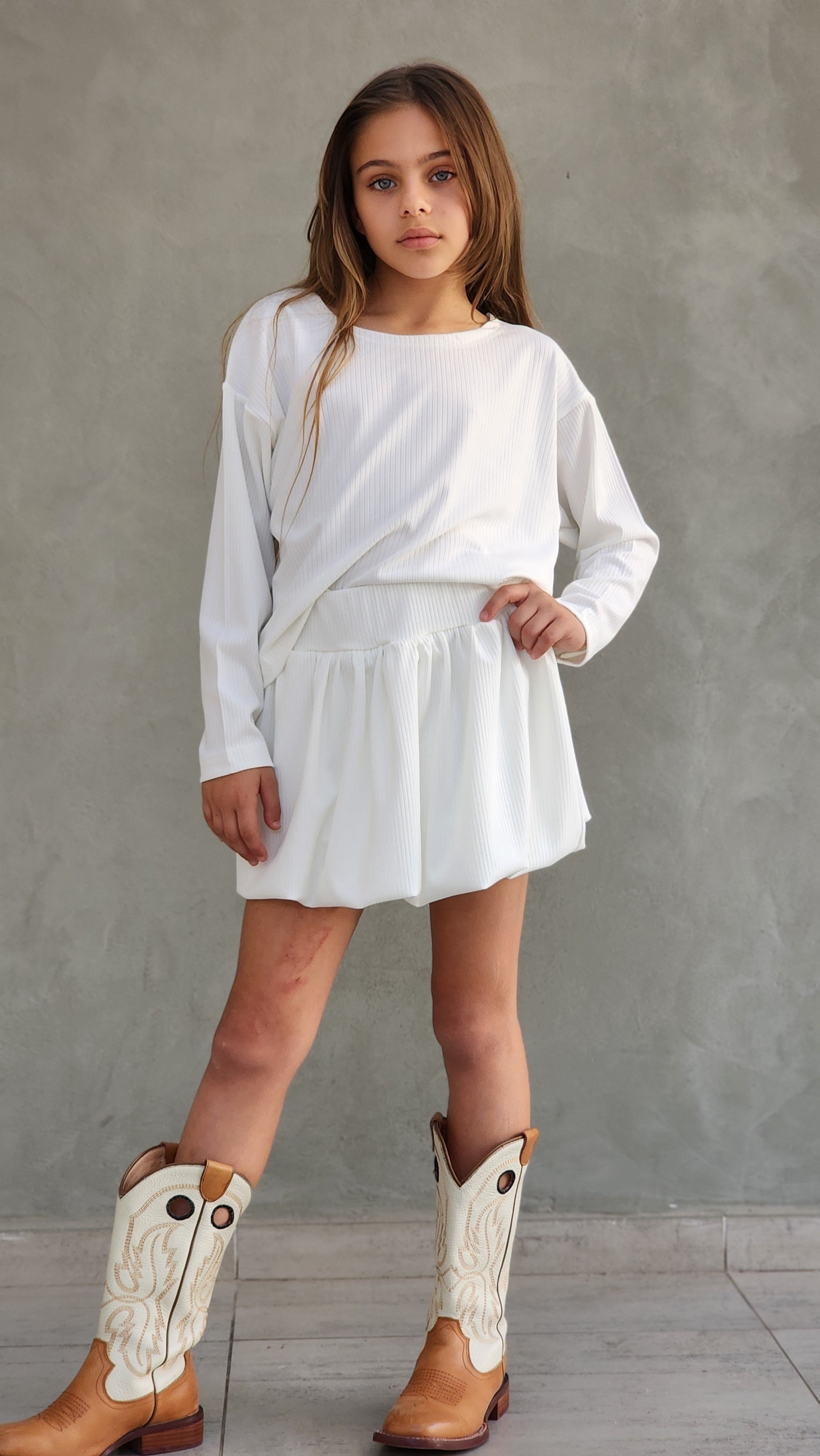 סט חצאית בלון סריג וחולצת קרופ רחבה