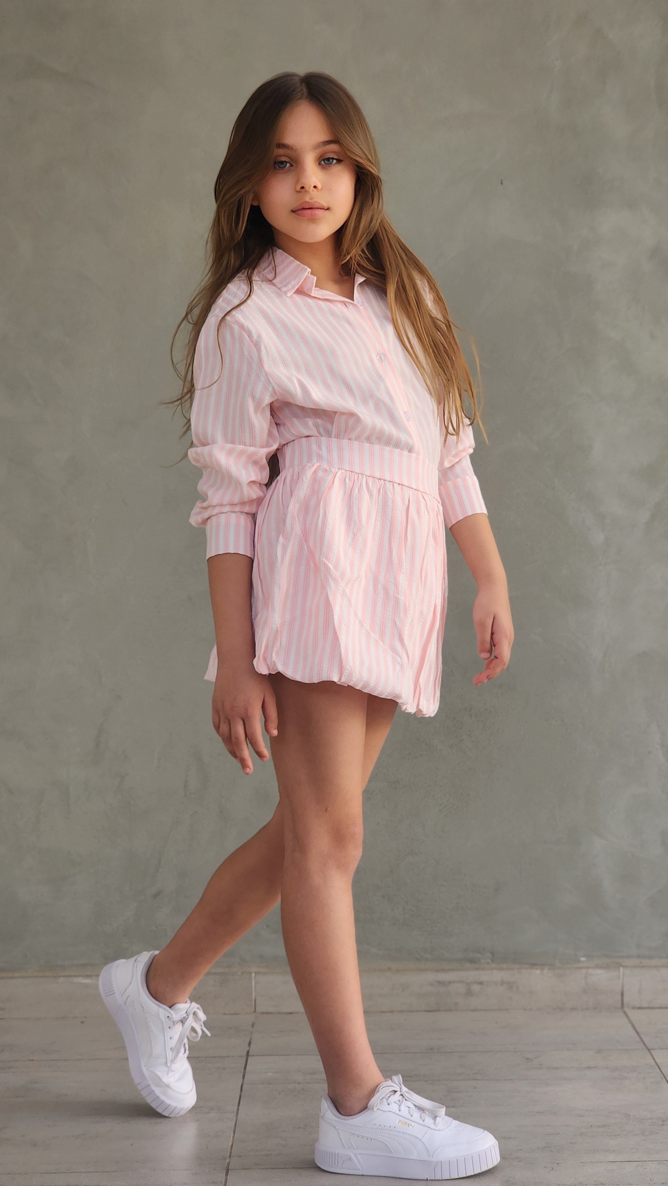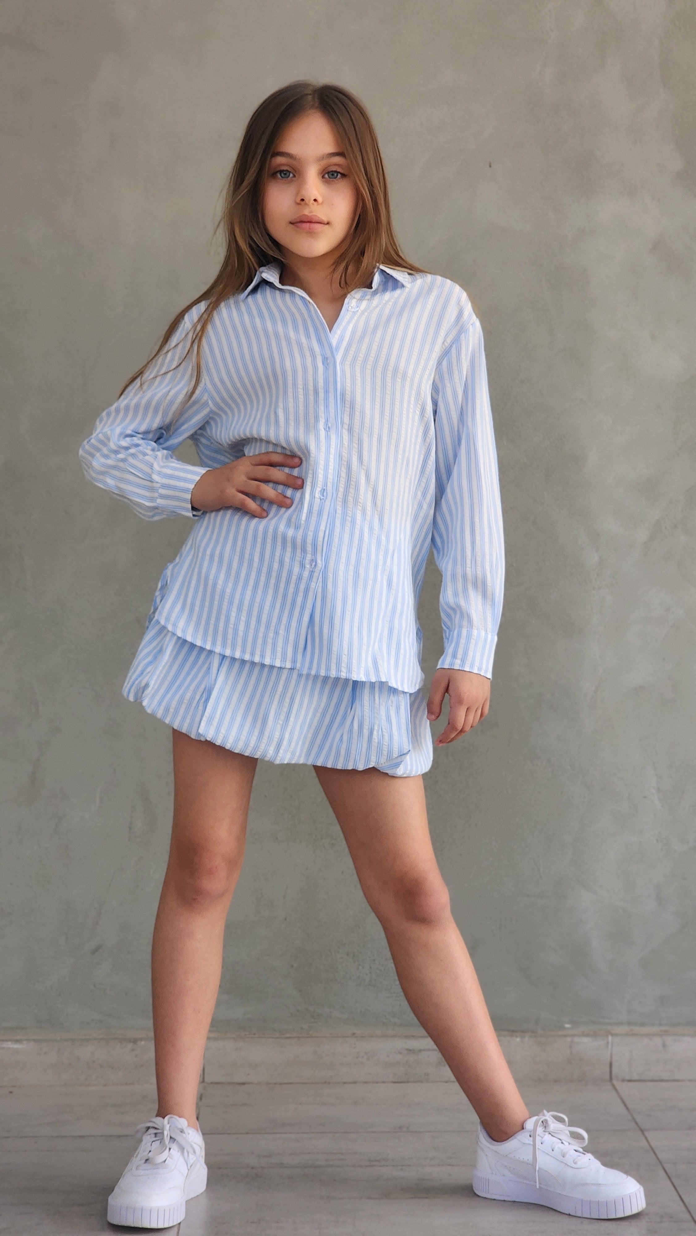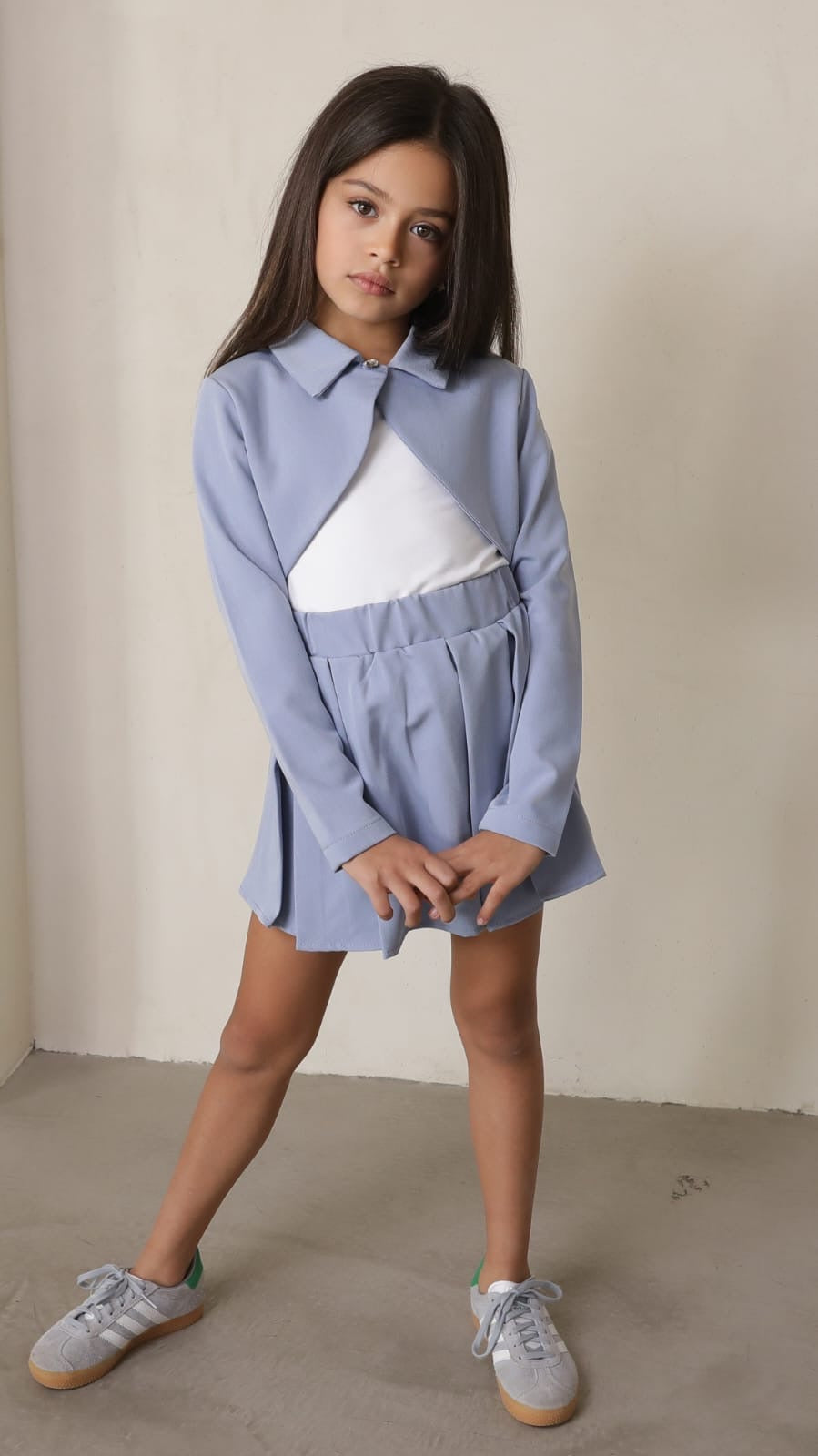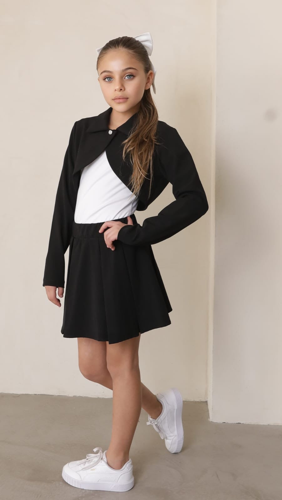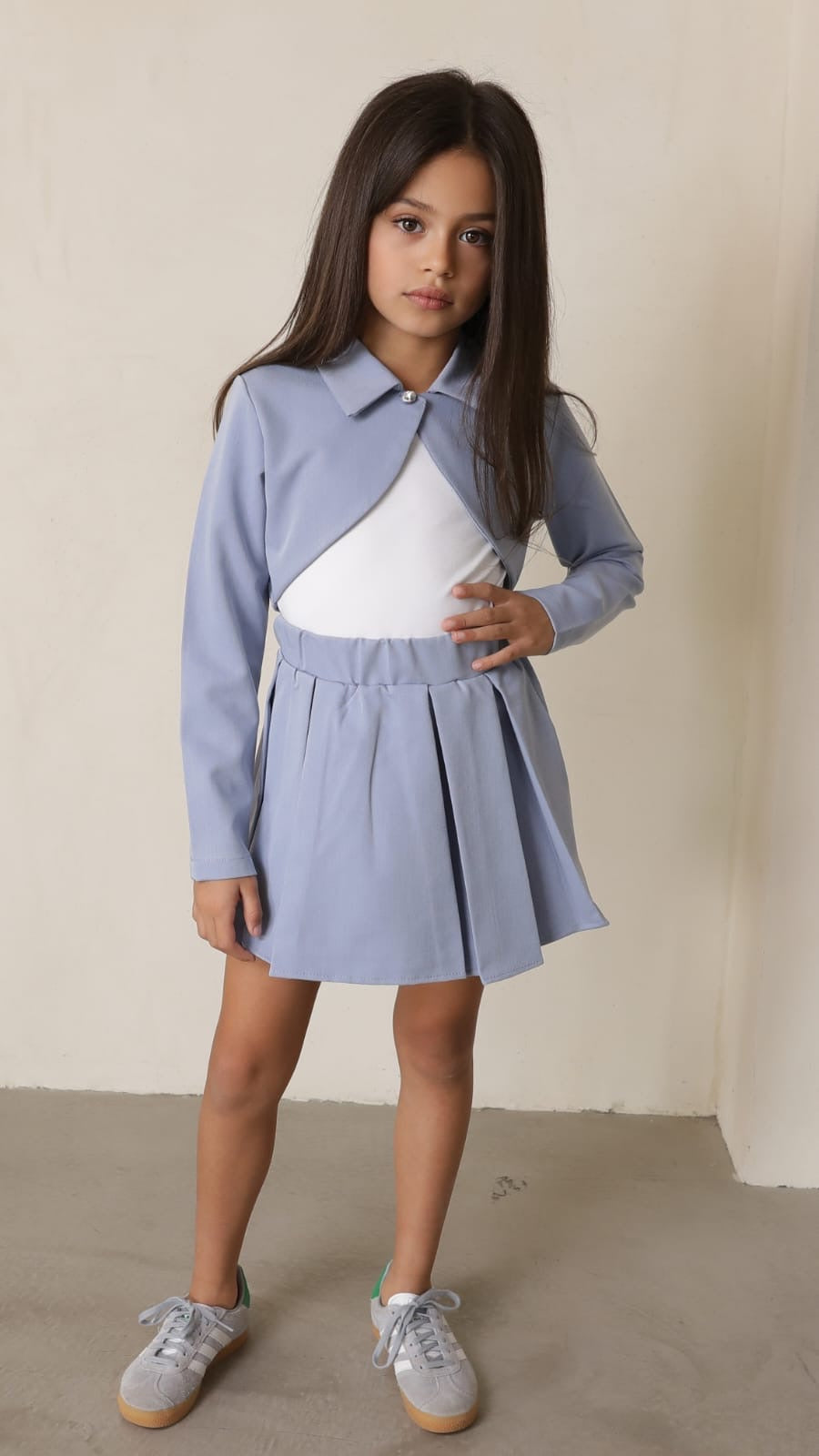 סט 3 חלקים חצאית כפלים ג'קט משולב וחולצה
