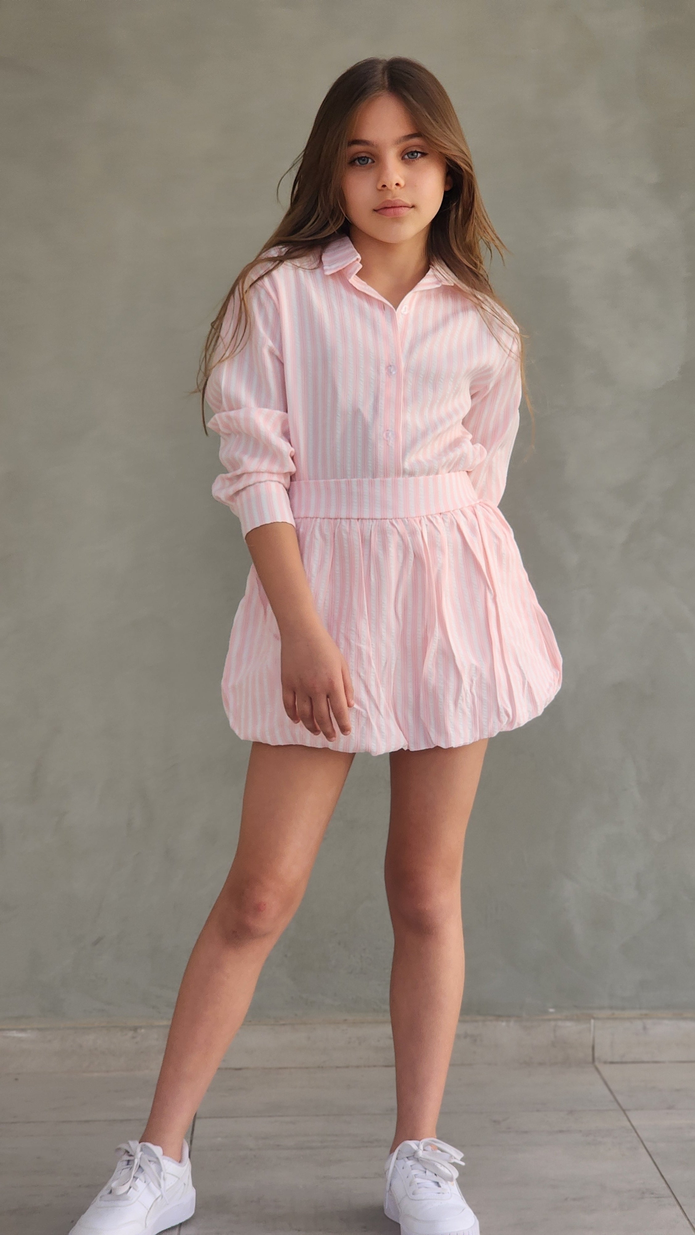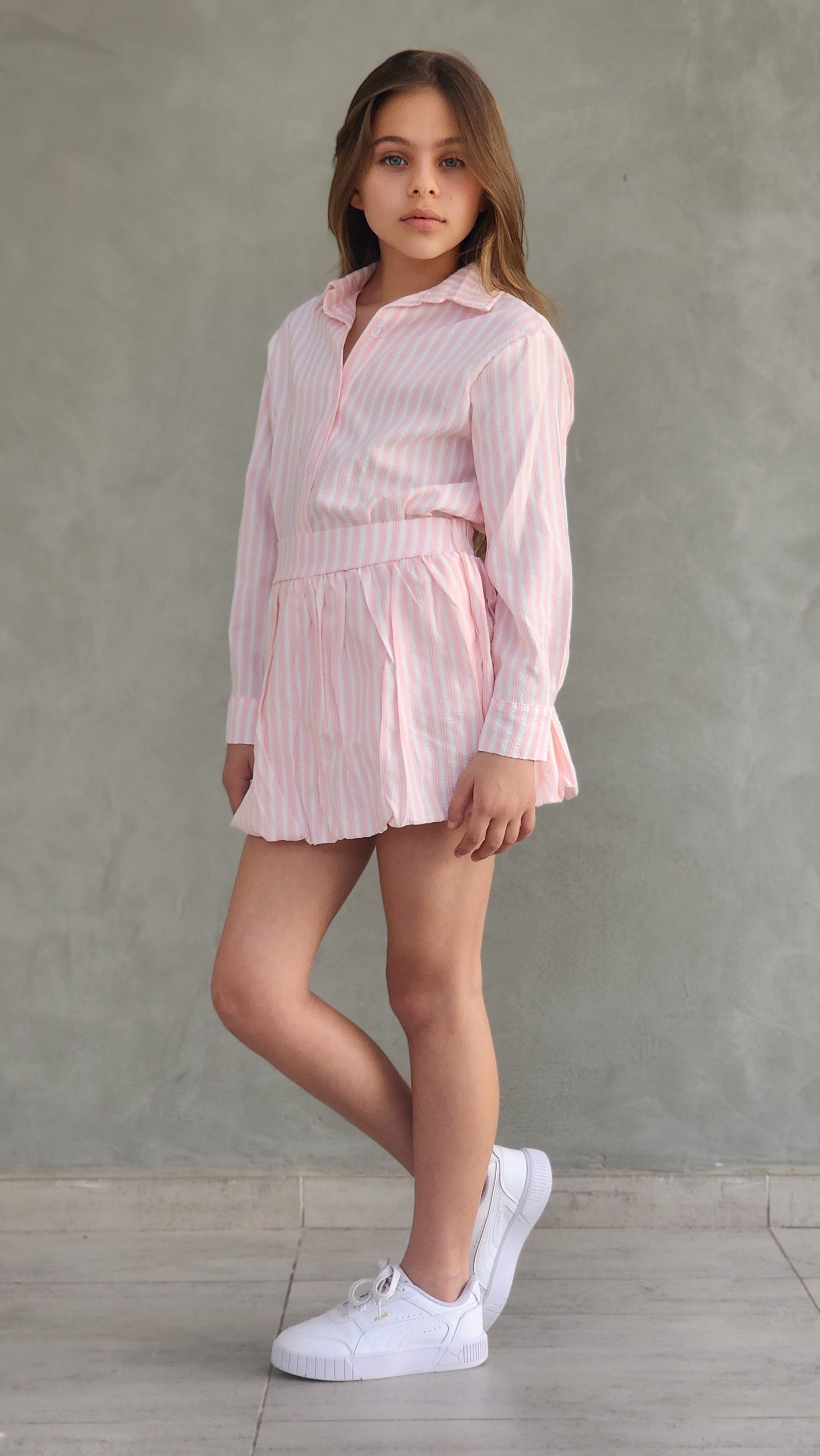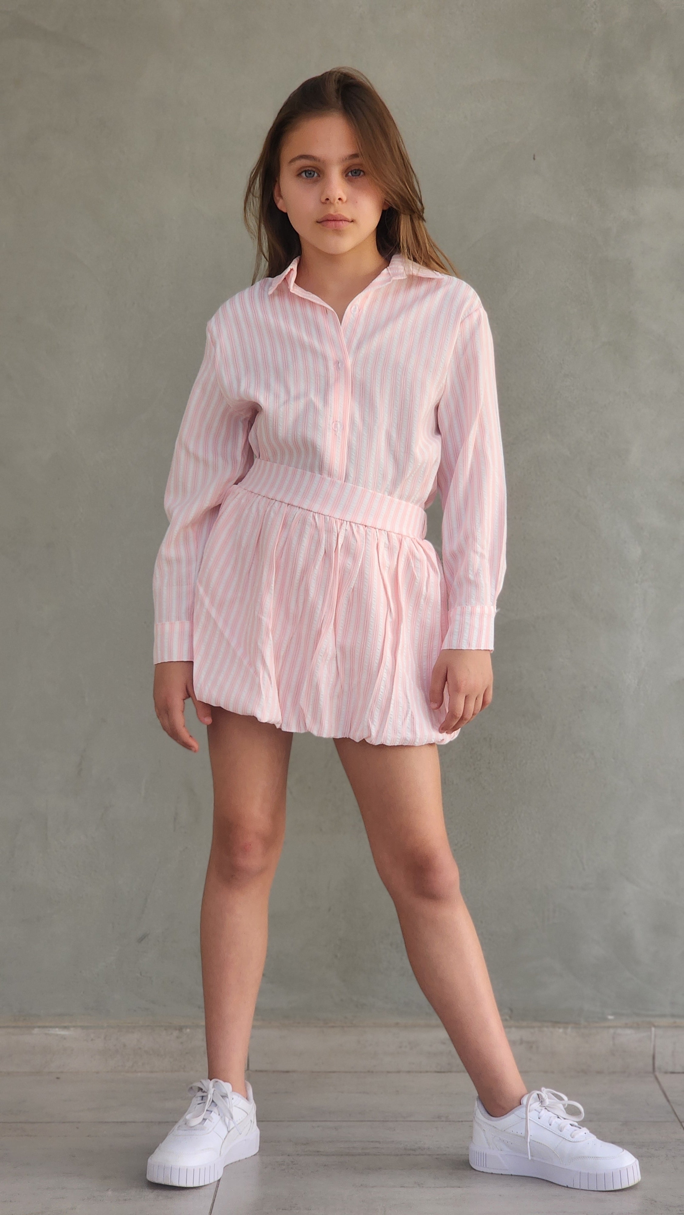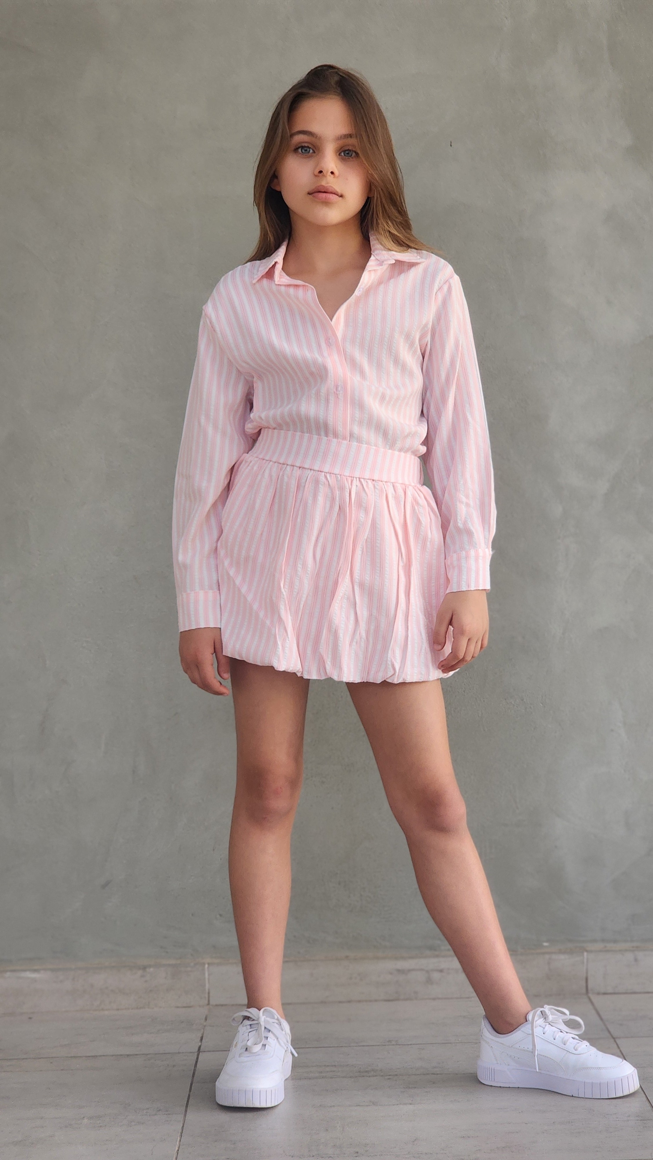 סט חצאית בלון וחולצה רחבה מסריג שערות