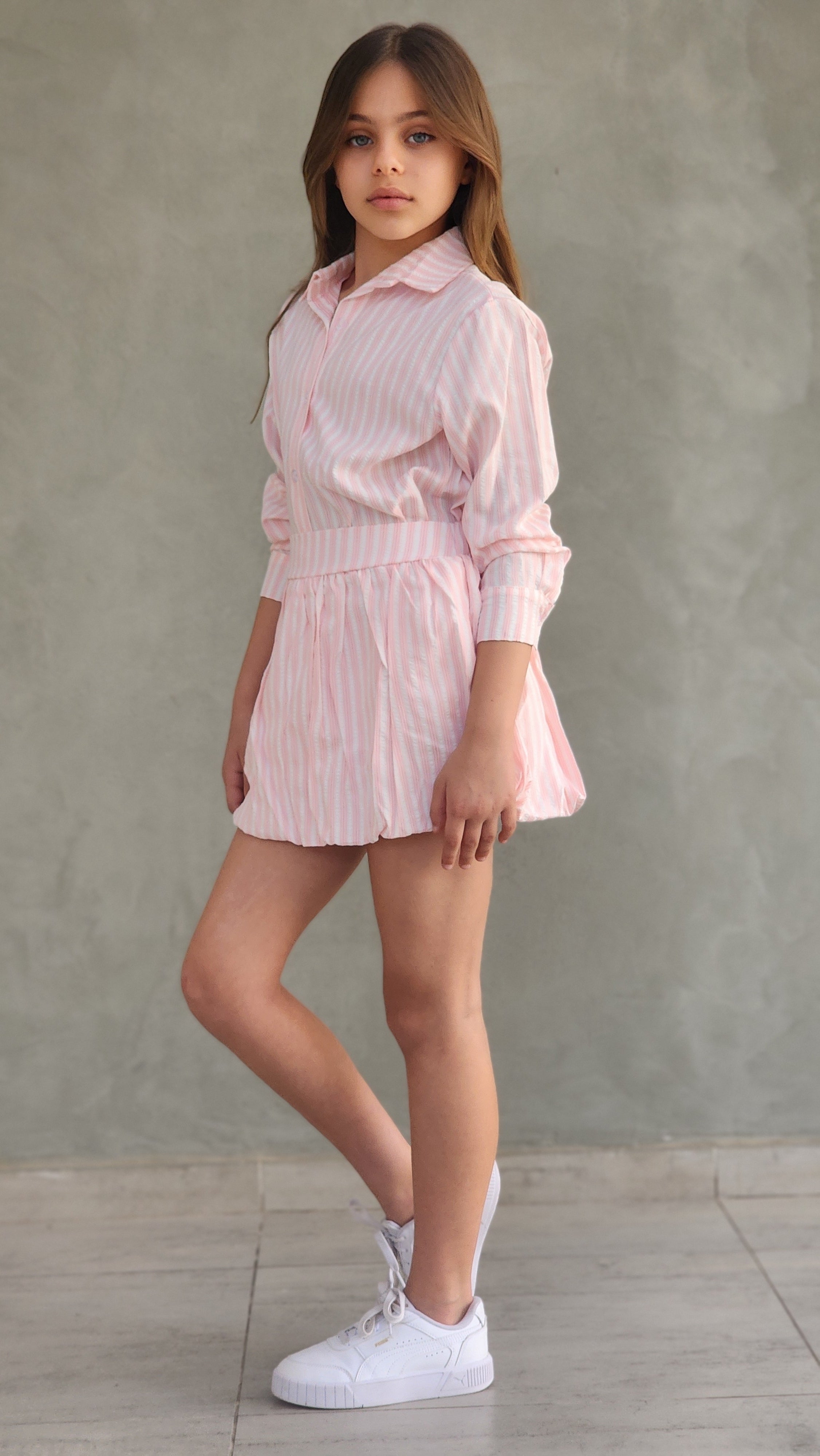 שמלת פרנצ'טרי שילוב שרוול פסים